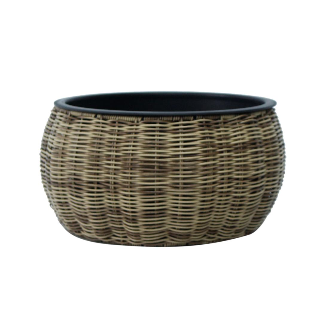 Lillepott WICKER D37xH19cm, helepruun. Lillepoti metallraam on kaetud plastikpunutisega. Plastikust sisepoti mõõdud on D28,5xH15cm. Sisepott on ilma auguta. Lillepott WICKER D37xH19cm, helepruun. Lillepoti metallraam on kaetud plastikpunutisega. Plastikust sisepoti mõõdud on D28,5xH15cm. Sisepott on ilma auguta.