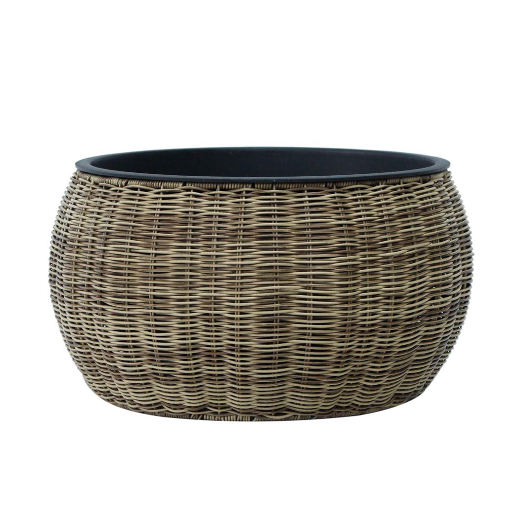 Lillepott WICKER D48xH26cm, helepruun. Lillepoti metallraam on kaetud plastikpunutisega. Plastikust sisepoti mõõdud on D38xH19cm. Sisepott on ilma auguta. Lillepott WICKER D48xH26cm, helepruun. Lillepoti metallraam on kaetud plastikpunutisega. Plastikust sisepoti mõõdud on D38xH19cm. Sisepott on ilma auguta.