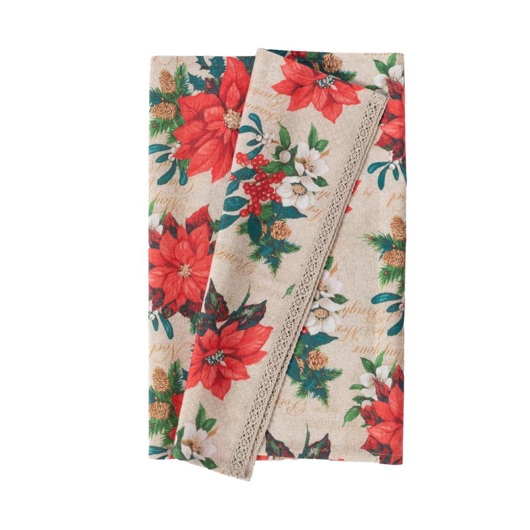 Linik WINTER FLOWERS pitsiga, 43x116cm, jõulutähed, 50% puuvill, 50%polüester, kangas 396