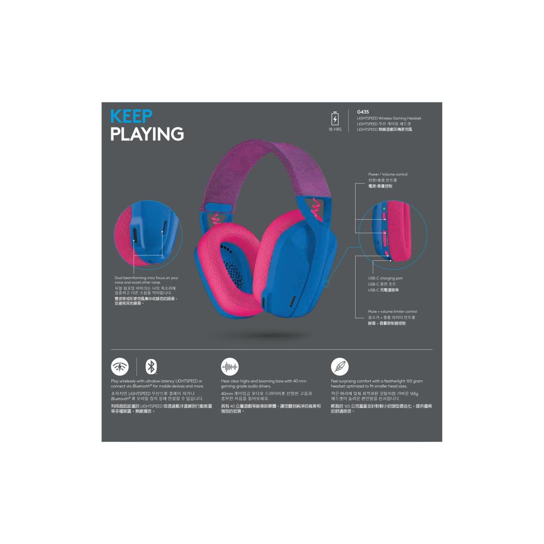 LOGITECH Lightspeed G435 Headset full size Bluetooth / 2.4 GHz radio frequency wireless blue Discord Certified LOGITECH Lightspeed G435 Headset full size Bluetooth / 2.4 GHz radio frequency wireless blue Discord Certified