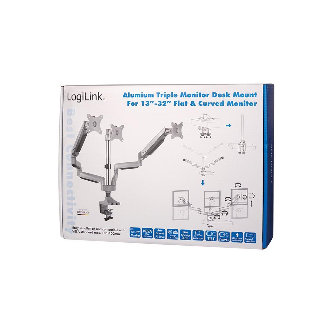 LOGILINK BP0052 LOGILINK - Triple alumium monitor desk mount,13-27, max. 7 kg LOGILINK BP0052 LOGILINK - Triple alumium monitor desk mount,13-27, max. 7 kg