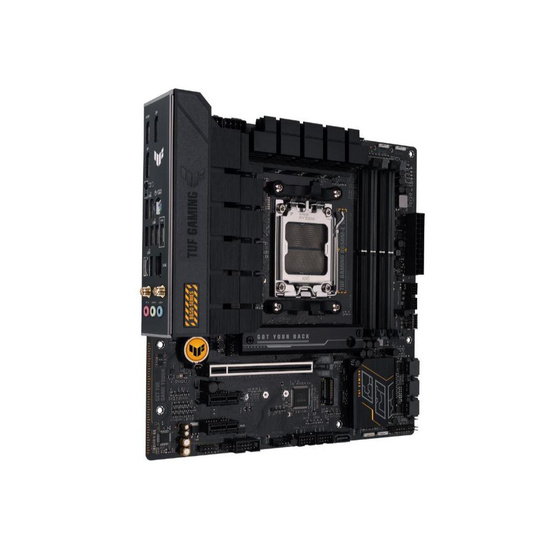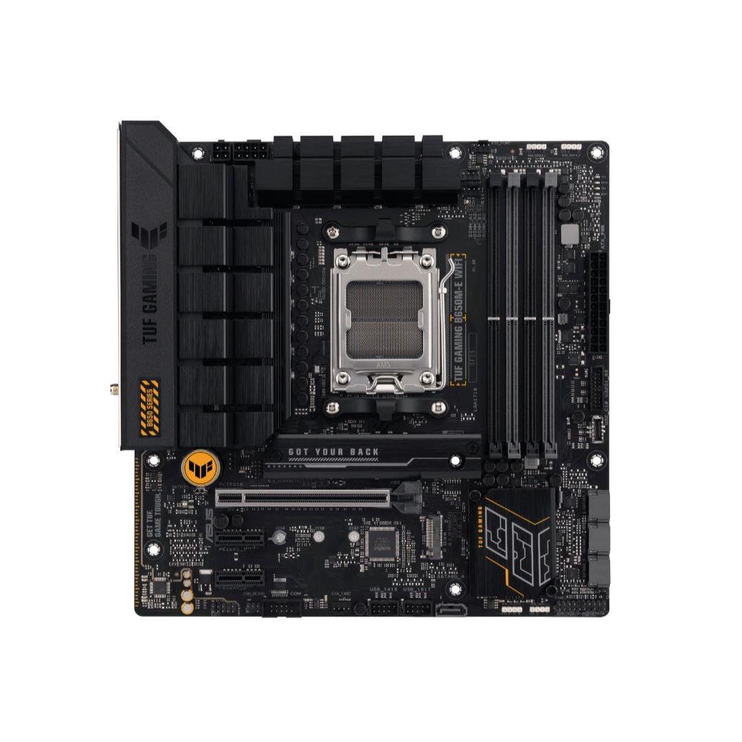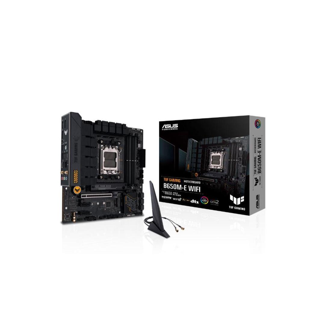 ASUS TUF GAMING B650M-E WIFI takes all the essential elements of the latest AMD Ryzen 7000-series processors and combines them with game-ready features and proven durability. Engineered with military-grade components, an upgraded power solution and a comprehensive cooling system, this motherboard goes beyond expectations with rock-solid and stable performance for marathon gaming. TUF GAMING motherboards also undergo rigorous endurance testing to ensure that they can handle conditions where others may fail. Aesthetically, this model incorporates rugged off-black and geometric design elements to reflect the dependability and stability that defines the TUF GAMING series.