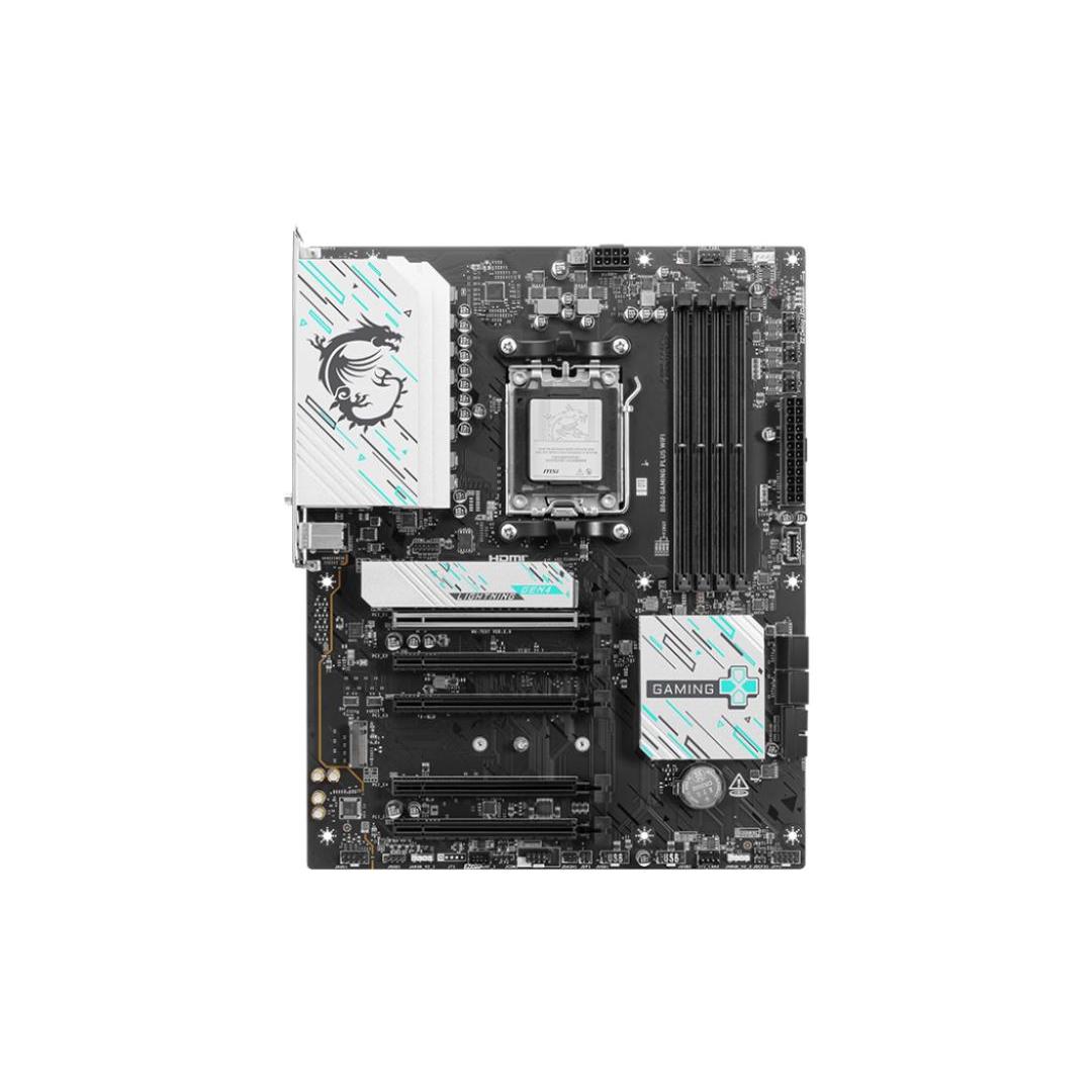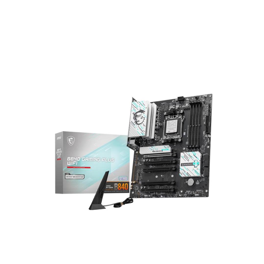 The B840 GAMING PLUS WIFI is crafted to offer extensive connectivity, versatile tools, and a premium Wi-Fi solution for gamers seeking a comprehensive experience. Featuring full-speed Wi-Fi 7, 2.5G LAN, PCIe 4.0 solution and exclusive EZ DIY features, it is ready for 24/7 non-stop gaming optimized for AMD Ryzen™ 9000 series processors.