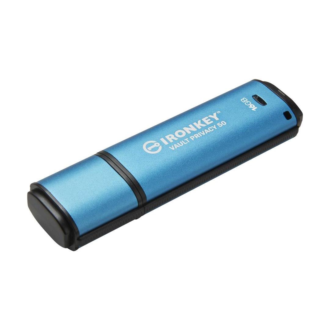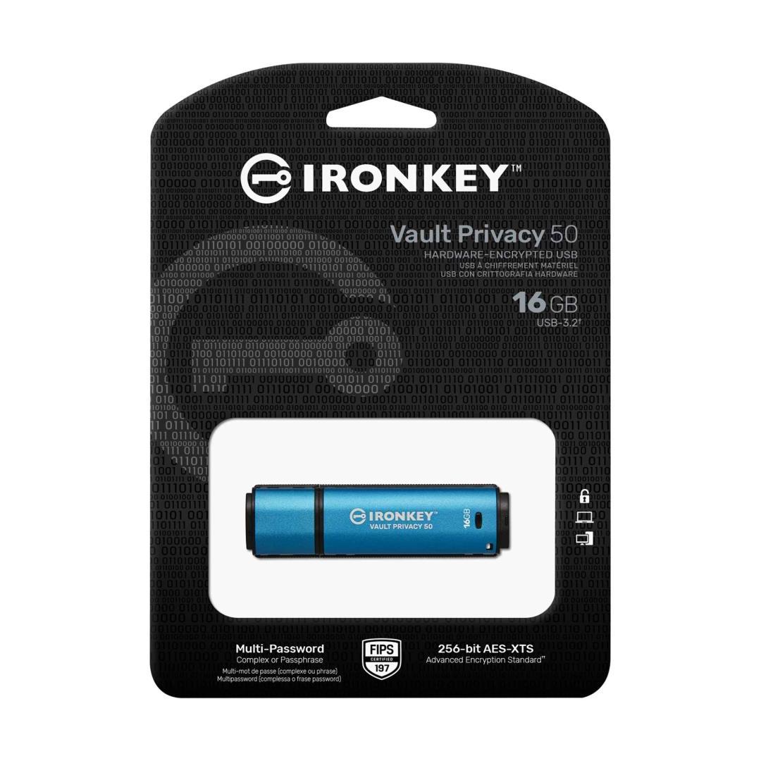 Kingston IronKey™ Vault Privacy 50 series are premium USB drives that provide business-grade security with FIPS 197 certified AES 256-bit hardware-encryption in XTS mode, including safeguards against BadUSB with digitally-signed firmware and against Brute Force password attacks. VP50 series is also TAA compliant. Because it is encrypted storage under the user’s physical control, VP50 series are superior to using the internet and Cloud services to safeguard data.