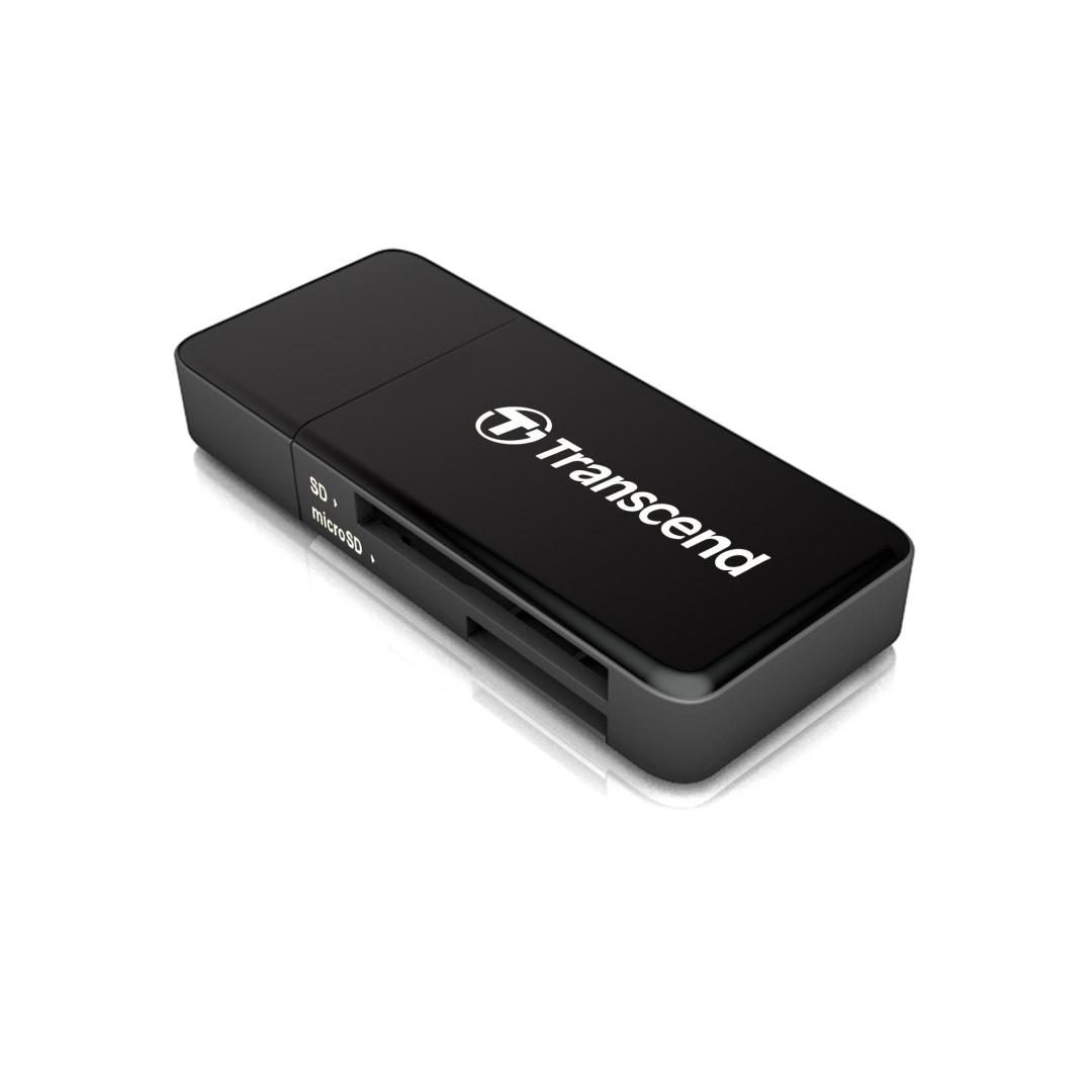 Transcend RDF5 Card Reader Black. Compatible memory cards: MicroSDHC, MicroSDXC, SDHC, SDXC, Product colour: Black, Certification: CE/FCC/BSMI/KC/RCM/EAC. Interface: USB 3.2 Gen 1 (3.1 Gen 1) Type-A. Input voltage: 5 V. Width: 24 mm, Depth: 8.9 mm, Height: 56 mm. Quantity per pack: 1 pc(s)