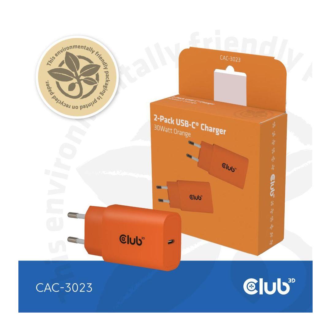 MOBILE CHARGER WALL USB-C/2PK 30W ORANGE CAC-3023 CLUB3D