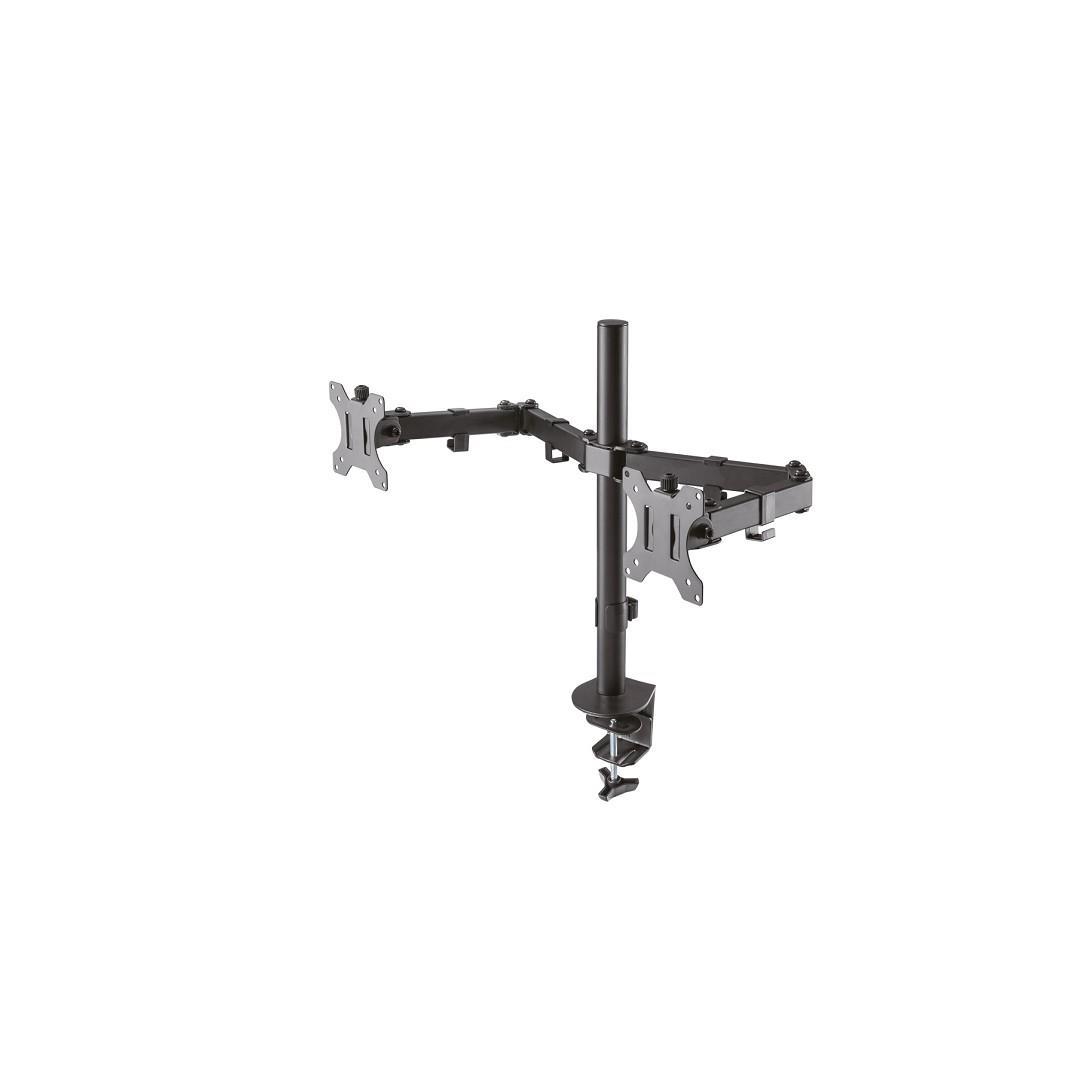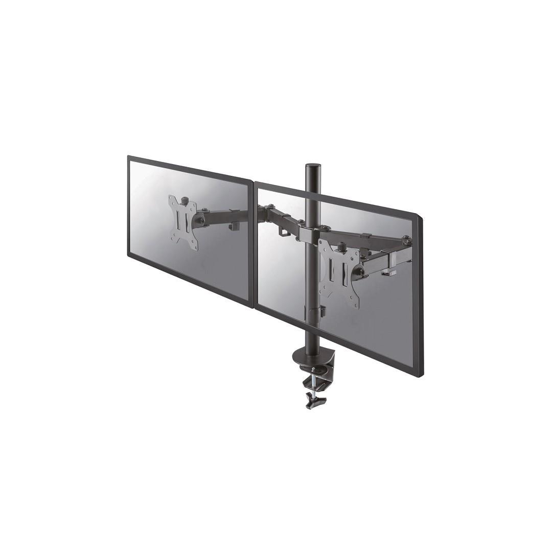 The Neomounts by Newstar desk mount, model FPMA-D550DBLACK is a tilt-, swivel and rotatable desk mount for 2 flat screens up to 32?. This mount is a great choice for space saving placement on desks using a desk clamp or grommet mount. Neomounts by Newstar's versatile tilt (90°), rotate (360°) and swivel (180°) technology allows the mount to change to any viewing angle to fully benefit from the capabilities of the flat screen. The mount is manually height adjustable from 0 to 44 centimetres. Depth adjustable from 4 to 46 centimetres. An innovative cable management conceals and routes cables from mount to flat screen. Hide your cables to keep the workplace nice and tidy. Neomounts by Newstar FPMA-D550DBLACK has three pivot points and is suitable for screens up to 32". The weight capacity of this product is 8 kg each screen. The desk mount is suitable for screens that meet VESA hole pattern 75x75 or 100x100mm. Different hole patterns can be covered using Neomounts by Newstar VESA adapter plates. By using an ergonomic mount neck- and back complaints can be avoided. Ideal for use in offices and on counters or in a reception area. All installation material is included with the product.