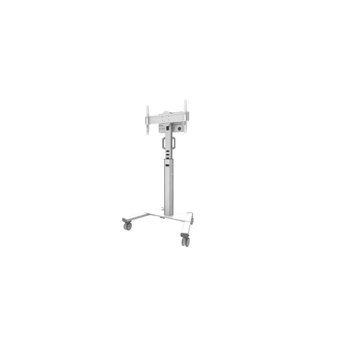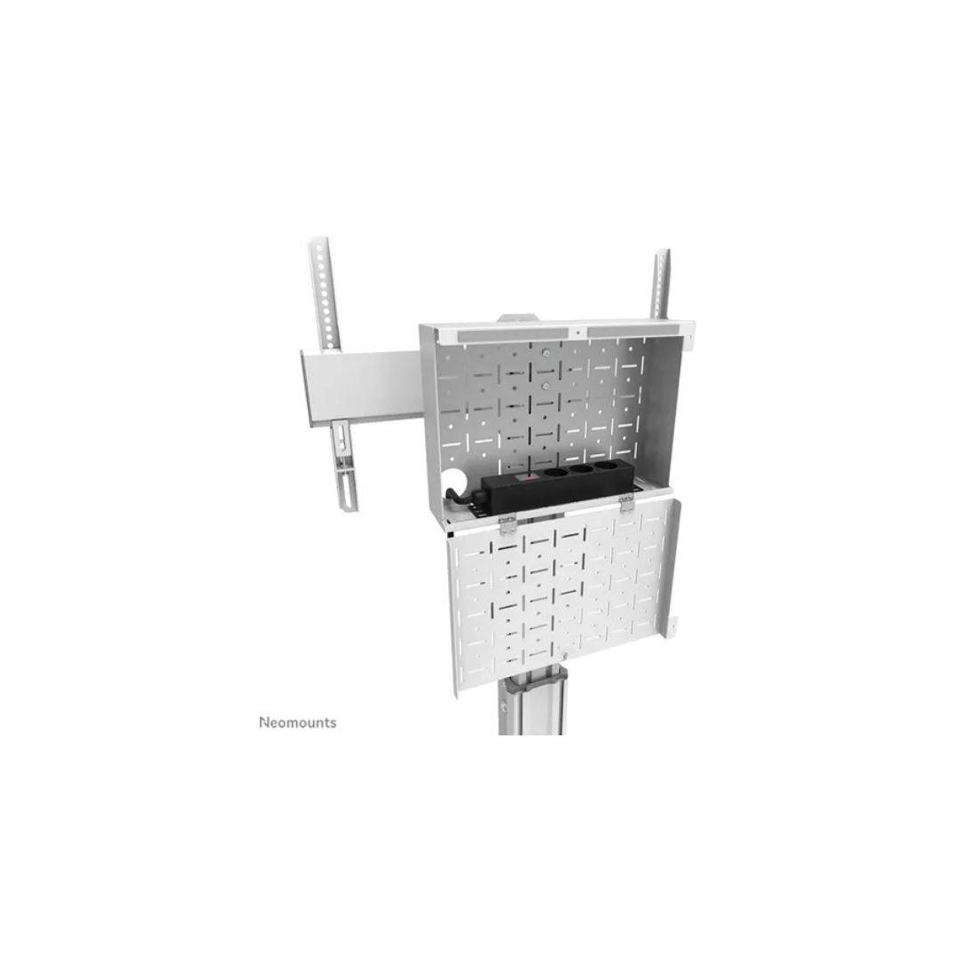 The Neomounts Select FL50S-825WH1 is a mobile floor stand for flat screens up to 75" with a maximum weight capacity of 70 kg. The floor stand is manually adjustable in height (114,5-153,5 cm), as well as the bracket head. A lockable, ventilated hardware compartment with cable opening is included and optional for installation (both portrait and landscape).