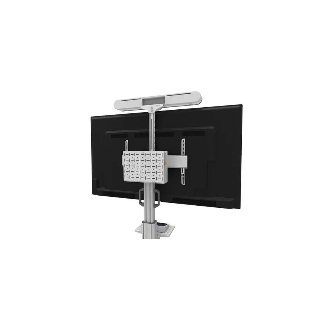 The AFLS-825WH1 videobar & multimedia kit is optionally available and enables the installation of a separate cam shelf and multimedia device shelf to the trolley. Included to the kit is an adapter for the Logitech Rally Bar (Mini). In addition, the multimedia shelf is suitable for installation of i.a. the Logitech Tap.