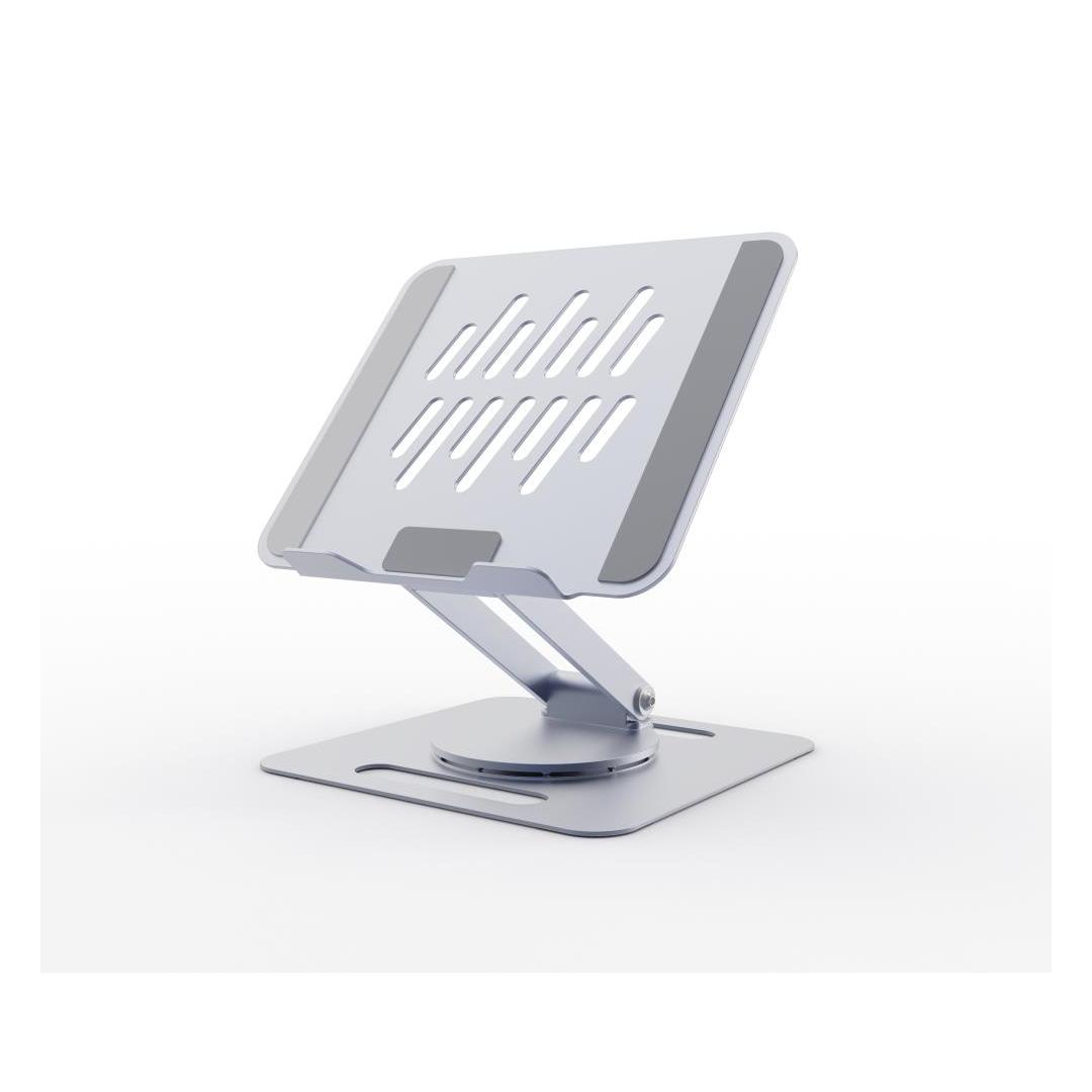 - Foldable rotating metal notebook riser stand with stepless height adjustment