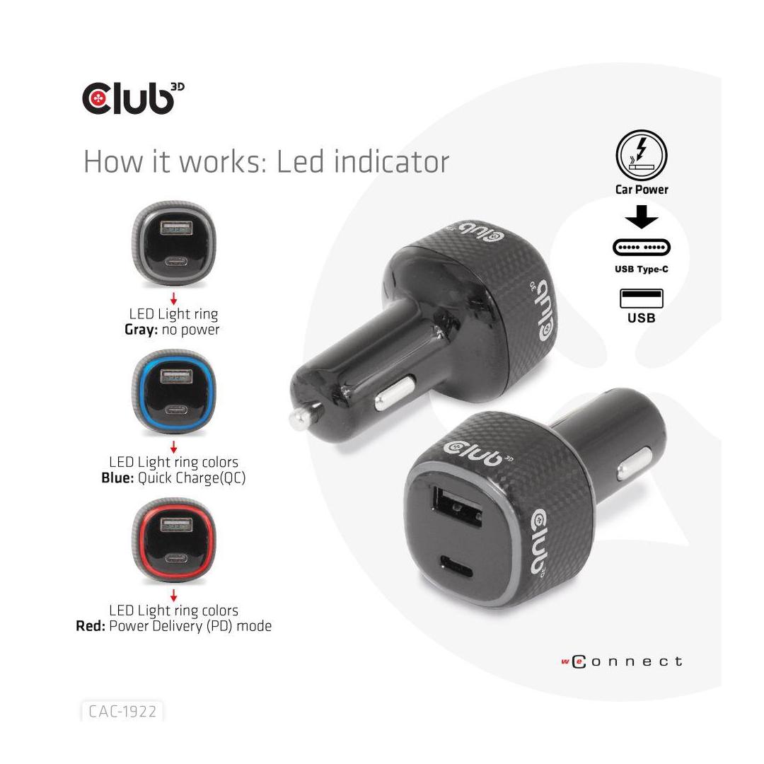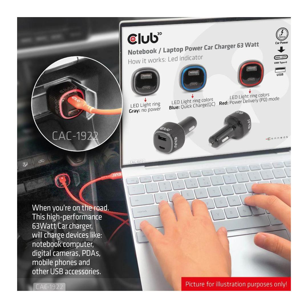 NB CHARGER CAR USB+USB-C/63W CAC-1922 CLUB3D