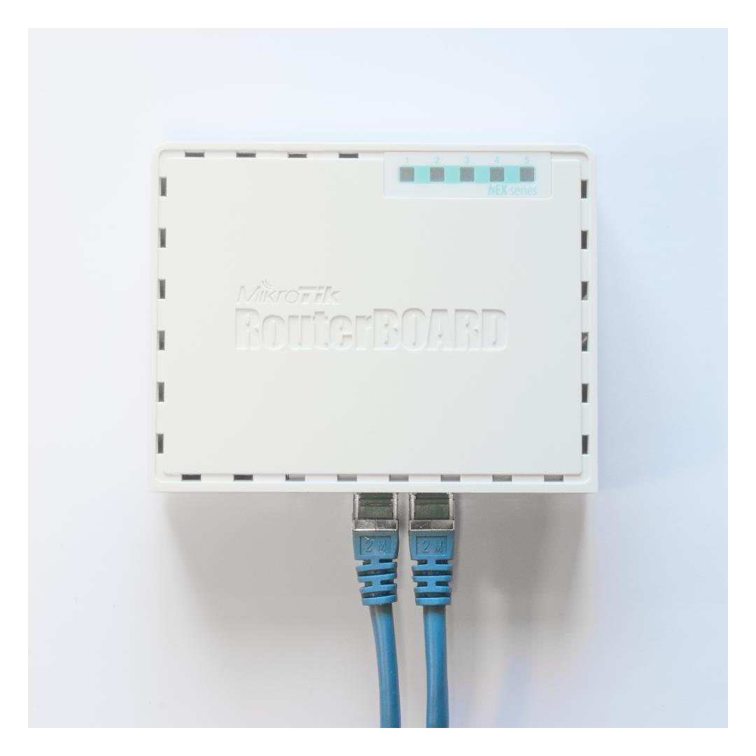 hEX is a five port gigabit ethernet router for locations where wireless connectivity is not required. The device has a full size USB port. This new updated revision of the hEX brings several improvements in performance. It is affordable, small and easy to use, but at the same time comes with a very powerful dual core 880MHz CPU and 256MB RAM, capable of all the advanced configurations that RouterOS supports. IPsec Hardware encryption (~470Mbps) and dude server package is supported, microSD slot on it also provides improved r/w speed for database storage on microSD card.