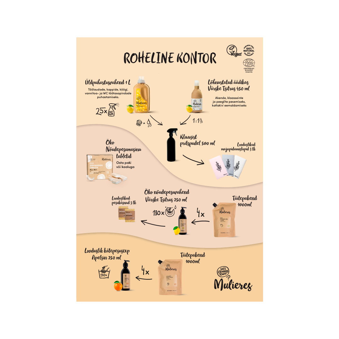 99,7% looduslikke koostisosi sisaldav Mulieres nõudepesuvahend eemaldab kergesti rasva ja teeb nõud säravaks. Nõudepesuvahend ei sisalda kahjulikke kemikaale, sünteetilisi värvi- ega lõhnaaineid.
