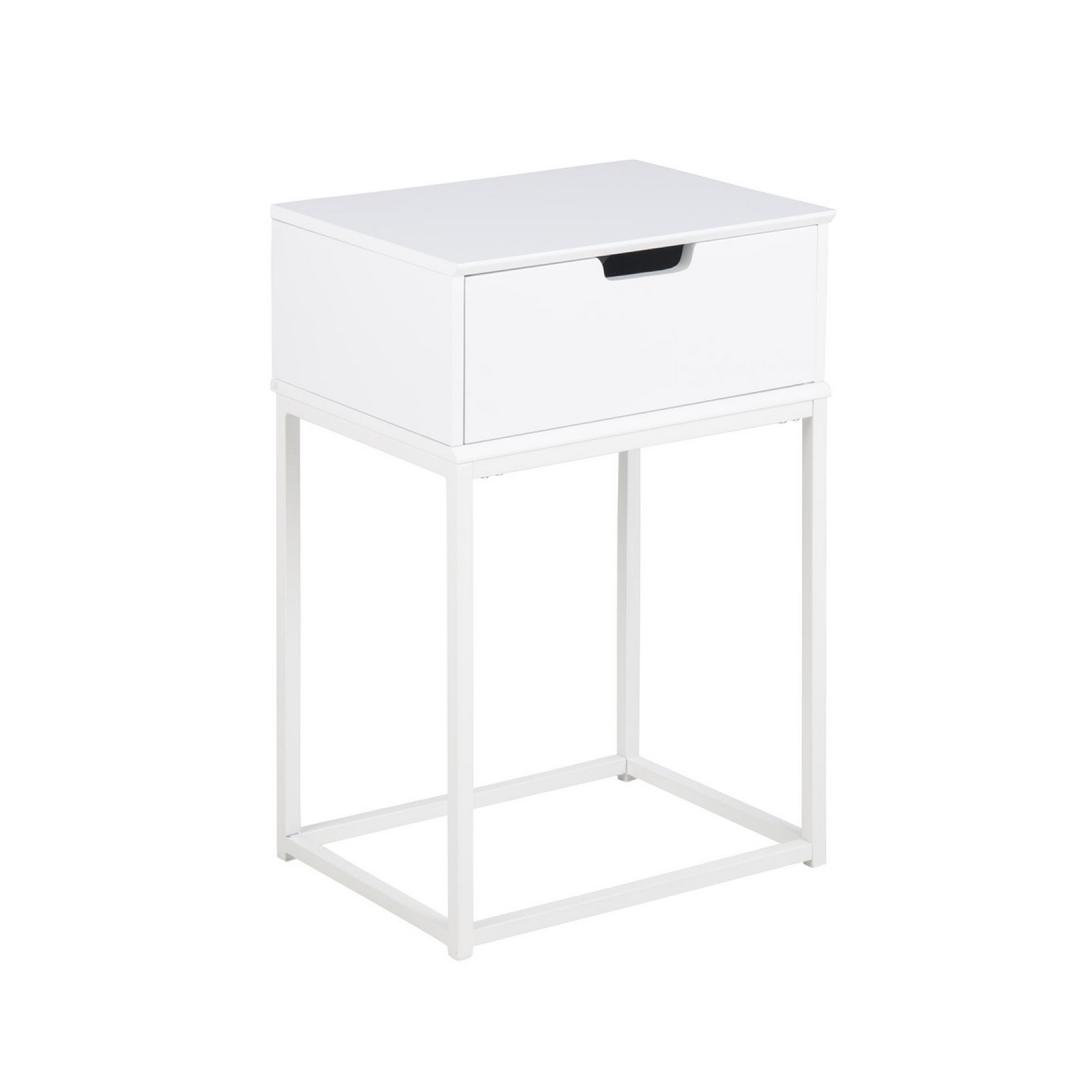 Öökapp MITRA 40x30xH61,5cm. Täiustage oma magamistuba elegantse öökapiga. Sahtli näol on tegemist praktilise hoiuruumiga, et saaksite vajalikke asju voodi kõrval hoida. Valge pealispind sobib ideaalselt pulbervärvitud metallalusega. Elegantse detailina mõjuv käepide. Materjal: MDF, valge; jalad: metall, valge. HOOLDUS: Üldjuhul vajavad värvitud pinnad vähe hoolt. Kõik plekid tuleb koheselt eemaldada seebiveest kuivaks väänatud lapiga ja pühkida pind kuivaks. Ärge hõõruge pinda kõvade esemetega.