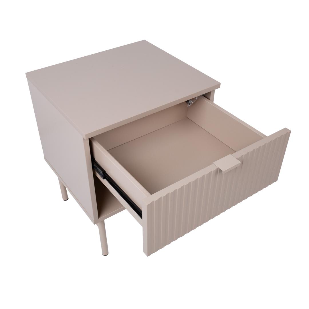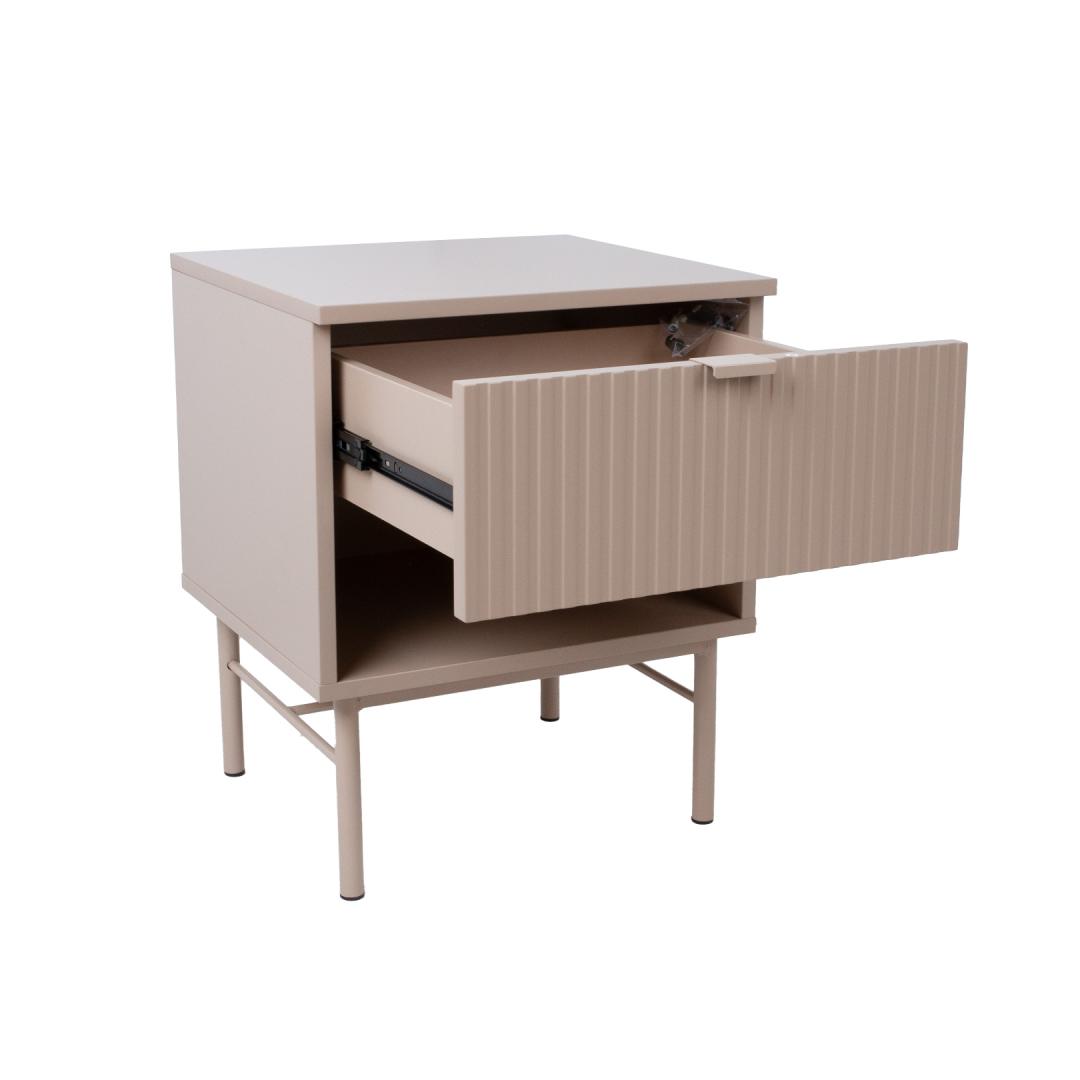 Öökapp SEQUENCE sahtli ja avatud riiuliga 45x40xH55cm, cappuccino. Öökapi korpus on valmistatud MDF plaadist. Reljeefse pinnaga triibulised sahtli esipaneelid annavad kapile omanäolise ja trendika välimuse. Sahtel liigub metallsiinidel. Öökapp on viimistletud vastupidava polüuretaanvärviga. Metallist alusraam ja jalad on viimistletud pulbervärviga. Öökapp SEQUENCE sahtli ja avatud riiuliga 45x40xH55cm, cappuccino. Öökapi korpus on valmistatud MDF plaadist. Reljeefse pinnaga triibulised sahtli esipaneelid annavad kapile omanäolise ja trendika välimuse. Sahtel liigub metallsiinidel. Öökapp on viimistletud vastupidava polüuretaanvärviga. Metallist alusraam ja jalad on viimistletud pulbervärviga.
