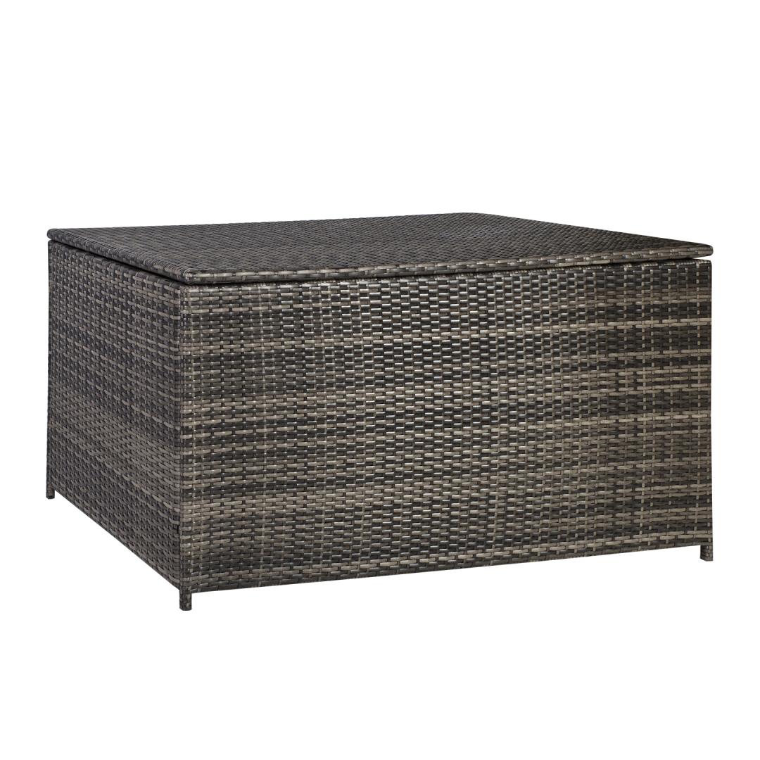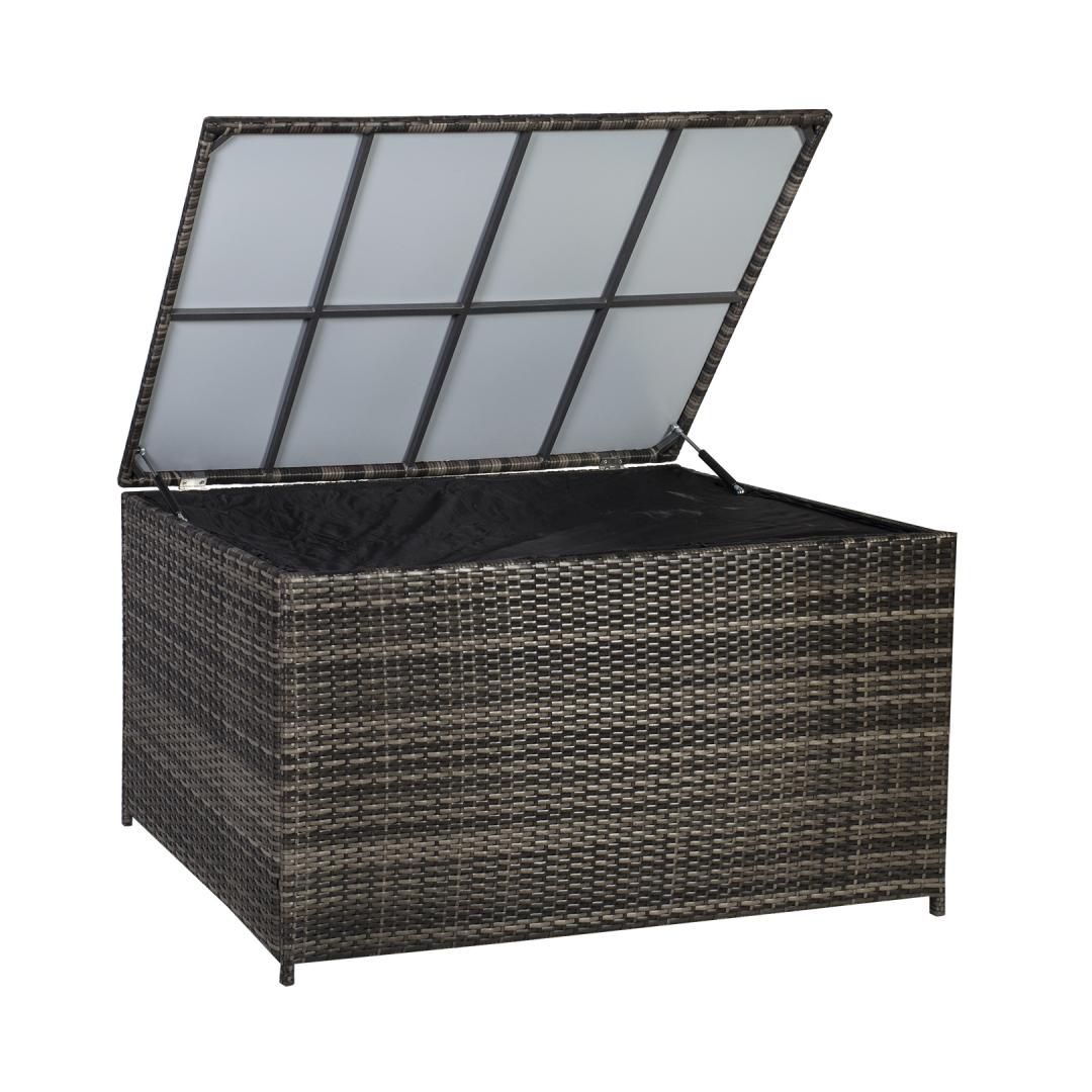 Padjakast WICKER 140x80xH65cm, tumepruun. Padjakast on hea lahendus aiamööbli patjade hoiustamiseks ja ilmastikumõjude eest kaitsmiseks. Padjakasti terasraam on kaetud plastikpunutisega, sees on must polüesterkangast vooder. Toode on muutlikes ilmastikutingimustes hästi vastupidav ja lihtsalt hooldatav. HOIUSTAMINE: suvehooaja lõppedes soovitame aiamööblit hoiustada siseruumides. Puhastage ja kuivatage mööbel enne hoiule panekut. Kasutage hoiustamiseks kuiva ning hea ventilatsiooniga ruumi.