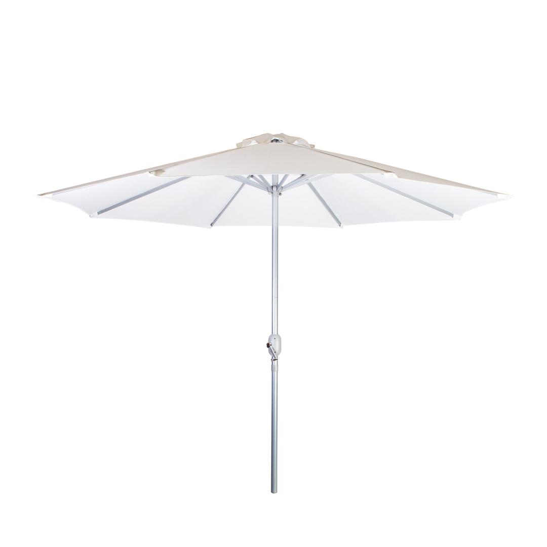 Päikesevari BAHAMA D2,7m, valge. Päikesevari on kaetud valge polüesterkangaga 180g/m². Varjul on 8 terasribi 12x18mm. Alumiiniumist tugijalg on viimistletud hõbedase pulbervärviga. Jala läbimõõt on 38mm. Päikesevarjualus ei kuulu komplekti. HOIATUS: toode ei ole mõeldud kaitseks vihma eest ega kasutamiseks tugeva tuule korral. Sulgege päikesevari alati peale kasutamist. HOIUSTAMINE: suvehooaja lõppedes soovitame päikesevarju hoiustada siseruumides. Puhastage ja kuivatage päikesevari enne hoiule panekut. Kasutage hoiustamiseks kuiva ning hea ventilatsiooniga ruumi.