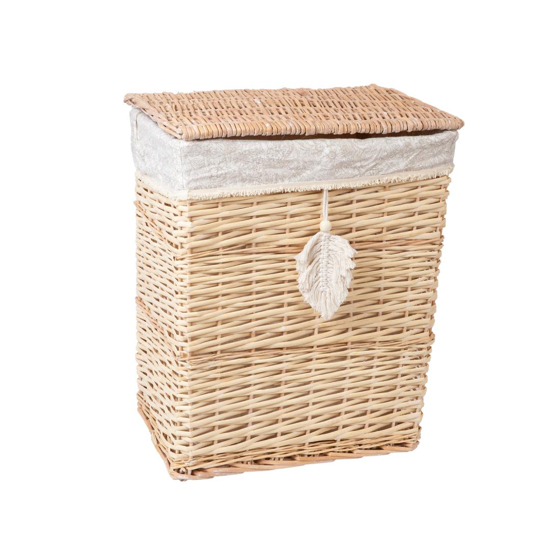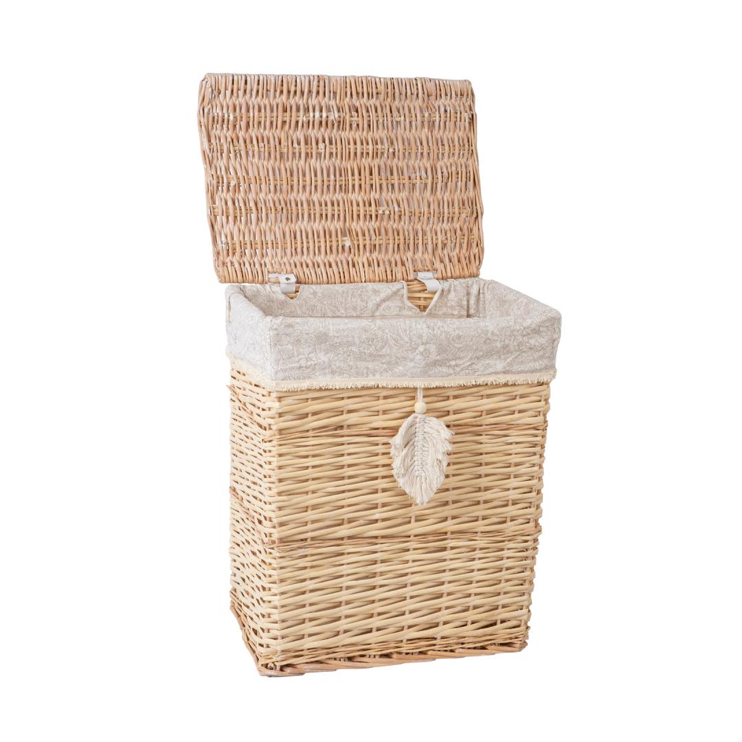 Tekstiilvooder: puuvillane taimemustriga kangas. Korvi materjal: käsitsi punutud naturaalne pajuvits.