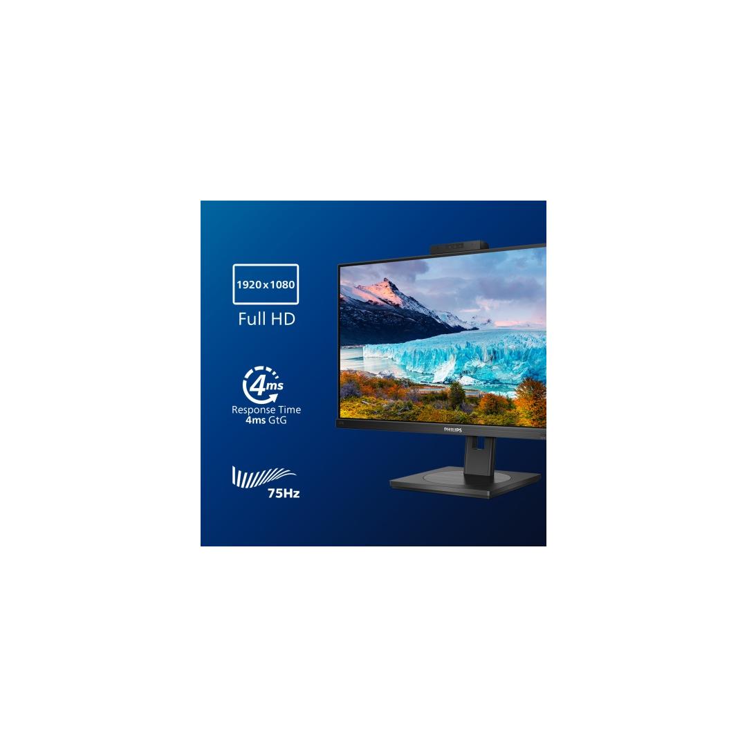 Philips S Line monitor provides features that guarantee comfortable work and daily productivity. 3-sided frameless bezel with crisp FHD gives a clearer and wider view. Pop-up webcam with Windows Hello delivers performance and convenience.