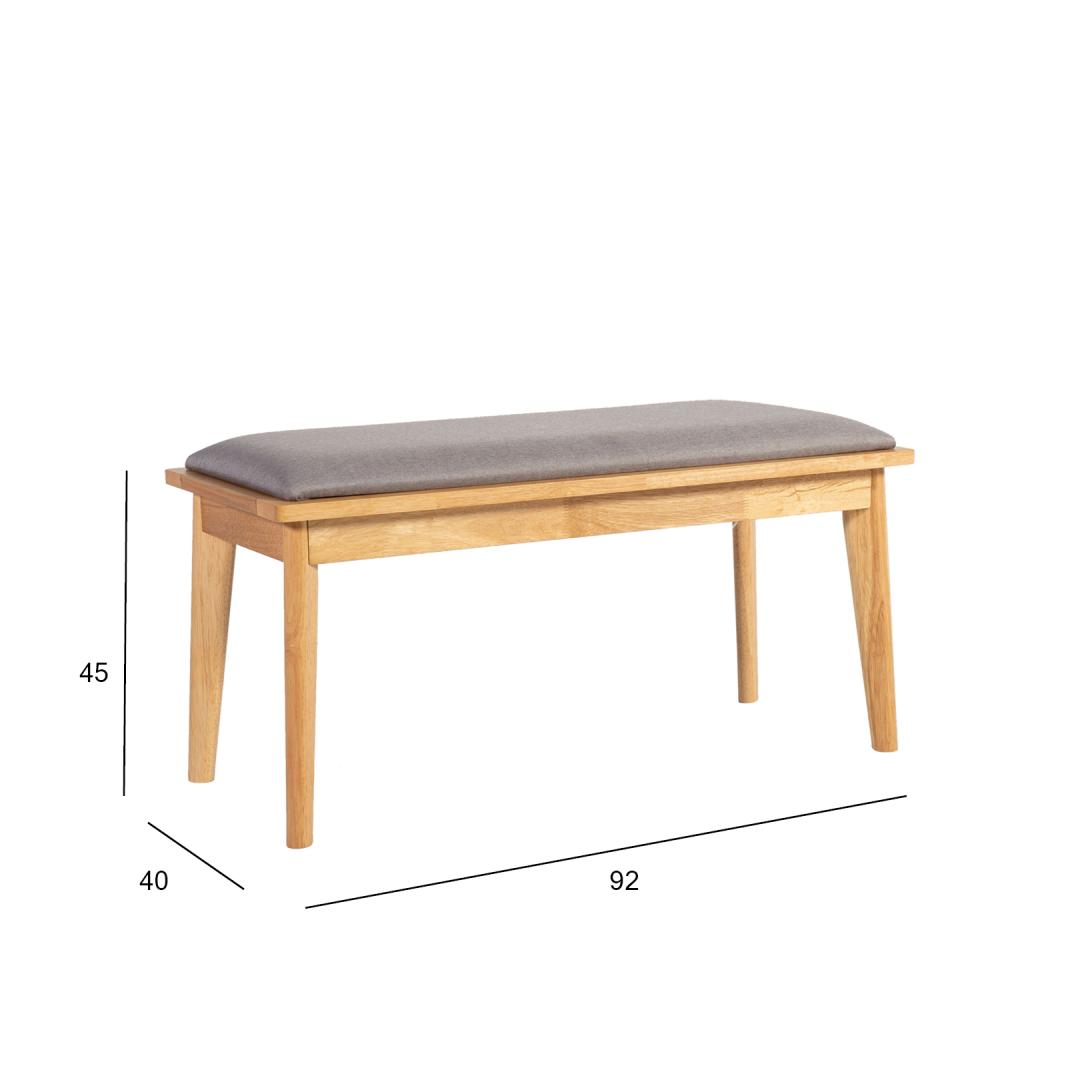 Pink JONNA 92x40xH45cm, halli kangaga kaetud iste, jalad ja raam: kummipuu, värvus: naturaalne.