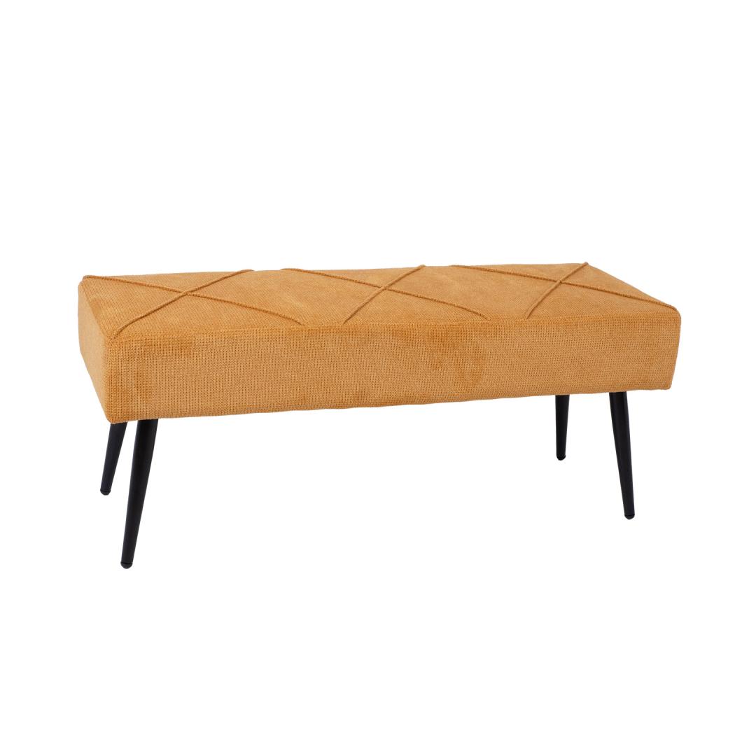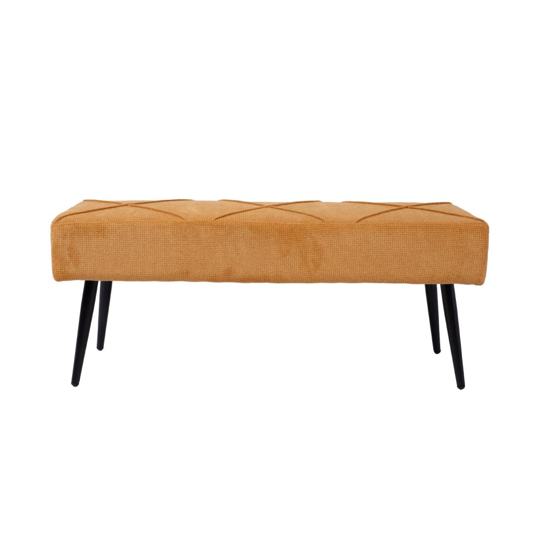 Pink KELSI 100x36x43cm, tumekollane. Pingi iste on polsterdatud ja kaetud polüesterkanaga. Pingi jalad on valmsitatud metallist ja viimistletud musta pulbervärviga. Pink KELSI 100x36x43cm, tumekollane. Pingi iste on polsterdatud ja kaetud polüesterkanaga. Pingi jalad on valmsitatud metallist ja viimistletud musta pulbervärviga.