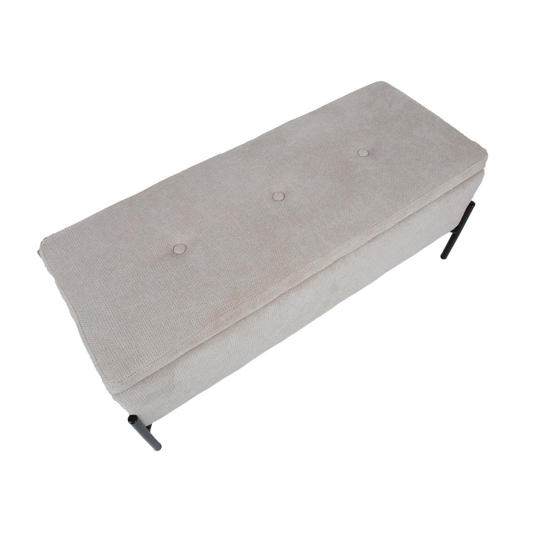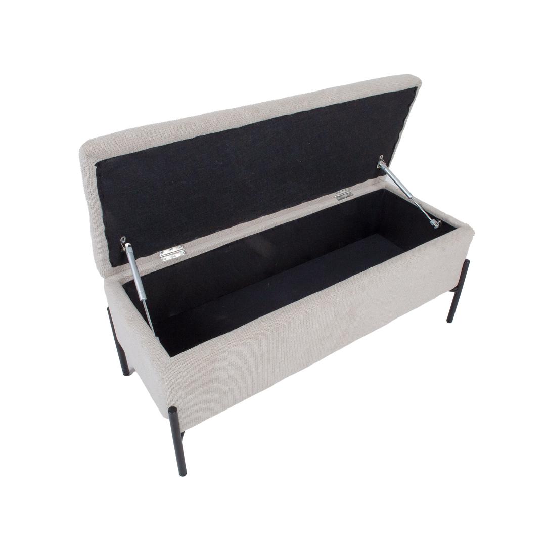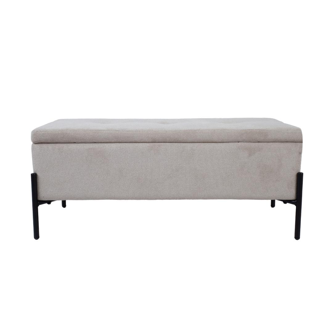 Pink RORI panipaigaga 95x35xH41cm, bee˛. Pingi iste ja korpus on polsterdatud ja kaetud polüesterkanaga. Pingi jalad on valmistatud metallist ja viimistletud musta pulbervärviga. Panipaiga sügavus 18cm.