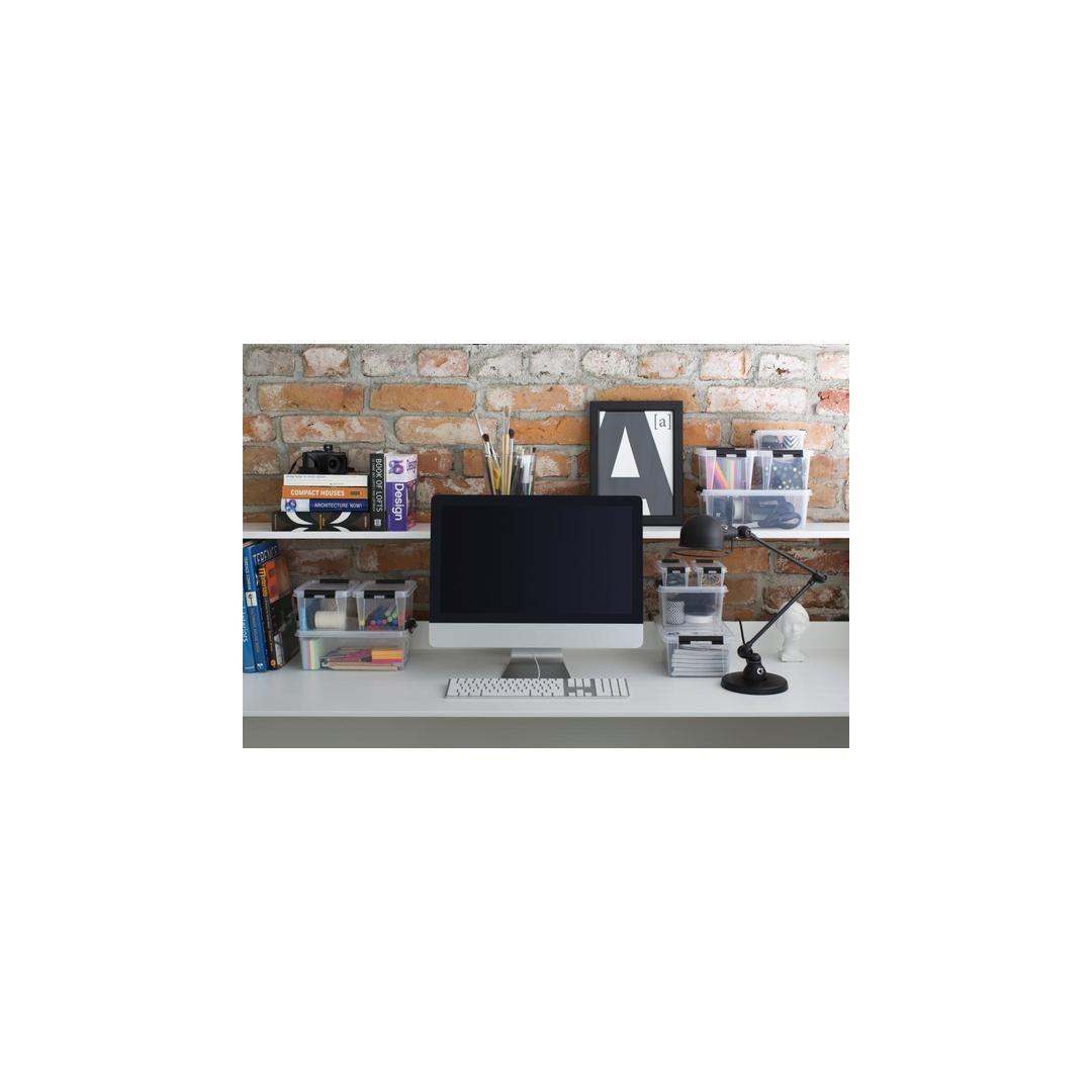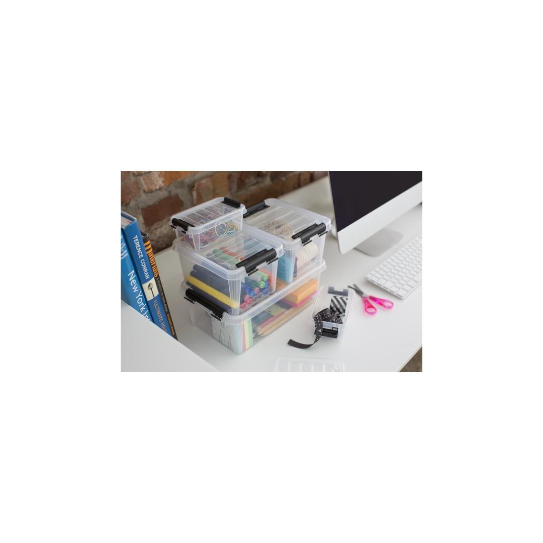 Praktiline hoiukast väiksemate esemete jaoks. Sobib suurepäraselt kontoritarvete, mänguasjade, vannitoa ja kosmeetikatoodete, kunsti- ja käsitöötarvete jne hoidmiseks. Klambrid hoiavad kaant kindlalt oma kohal. Sobib toidu säilitamiseks. SmartSTore kastid on virnastatavad.