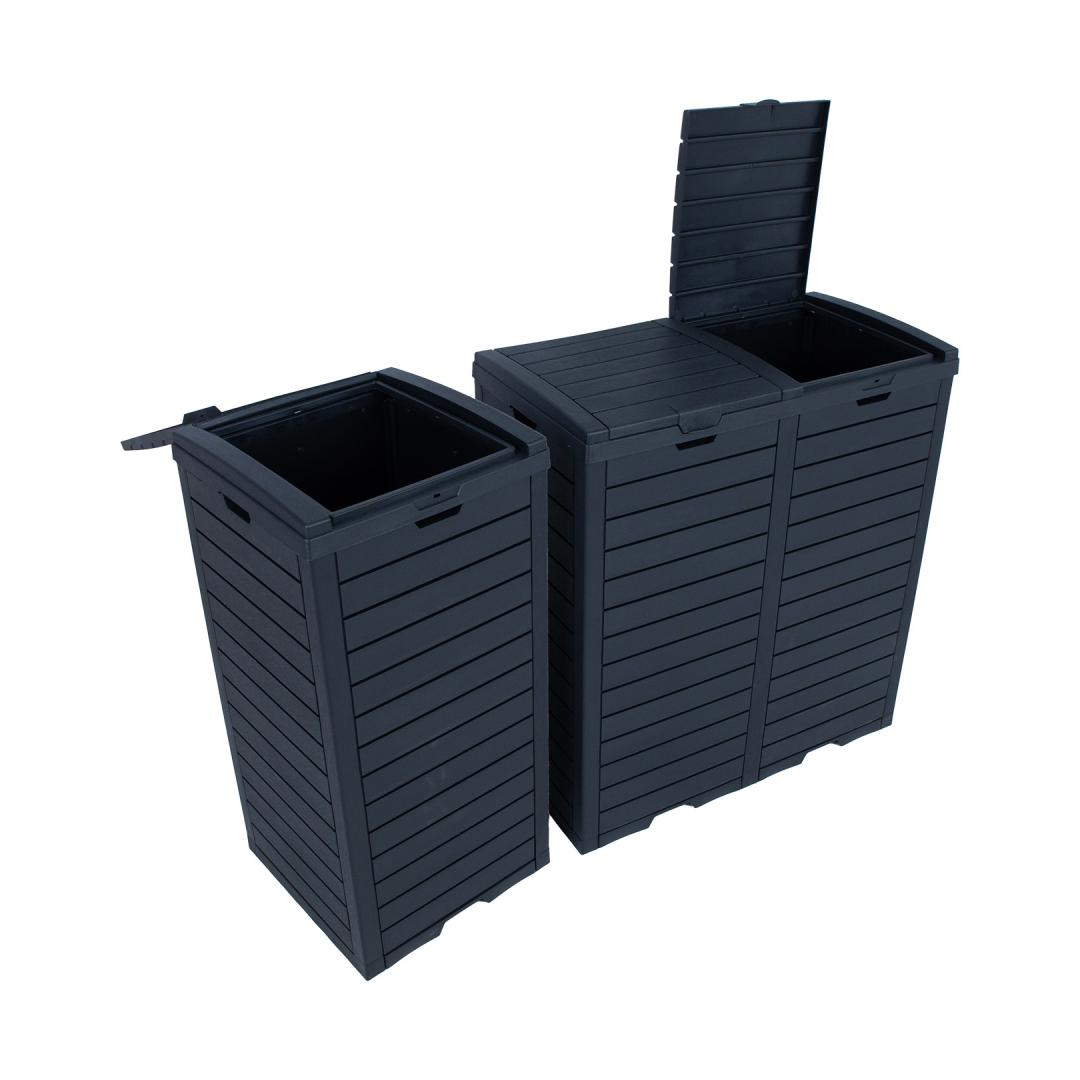 Prügikast GALA 78x41xH86cm/230L, must puidu imitatsiooniga plastik.