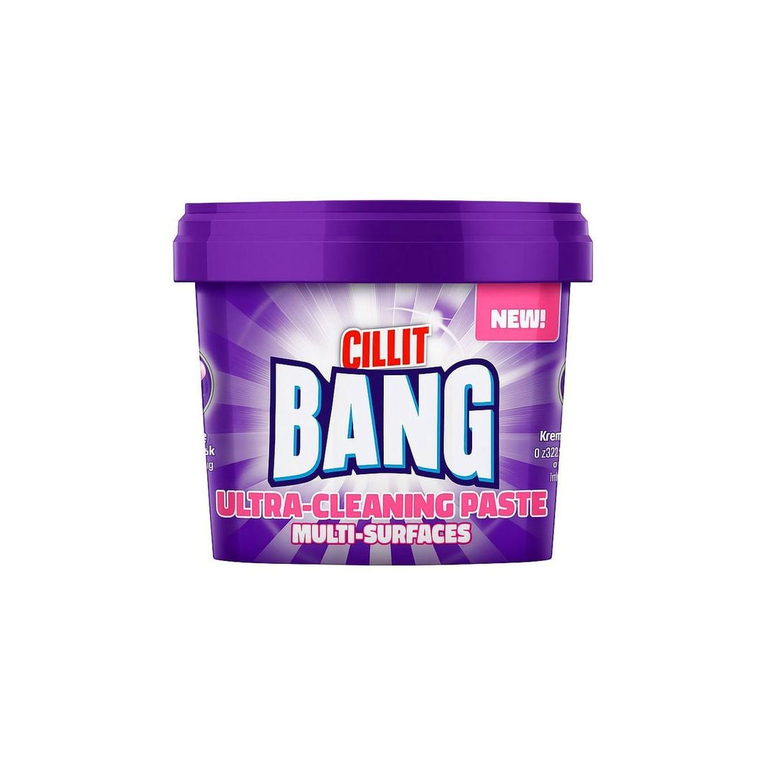Cillit Bang Ultra-Cleaning Paste mitmetele pindadele. Kreemjas, söögisooda baasil valmistatud puhastuspasta meeldiva lõhnaga. Eemaldab tõhusalt kuni 100% kangekaelsetest plekkidest ja jätab särava läike – ideaalne kööki, vannituppa ja õue. eemaldab kuni 100% raskesti eemaldatavatest plekkidest ja mustusest. kreemjas konsistents ja meeldiv lõhn. söögisoodal põhinev valem