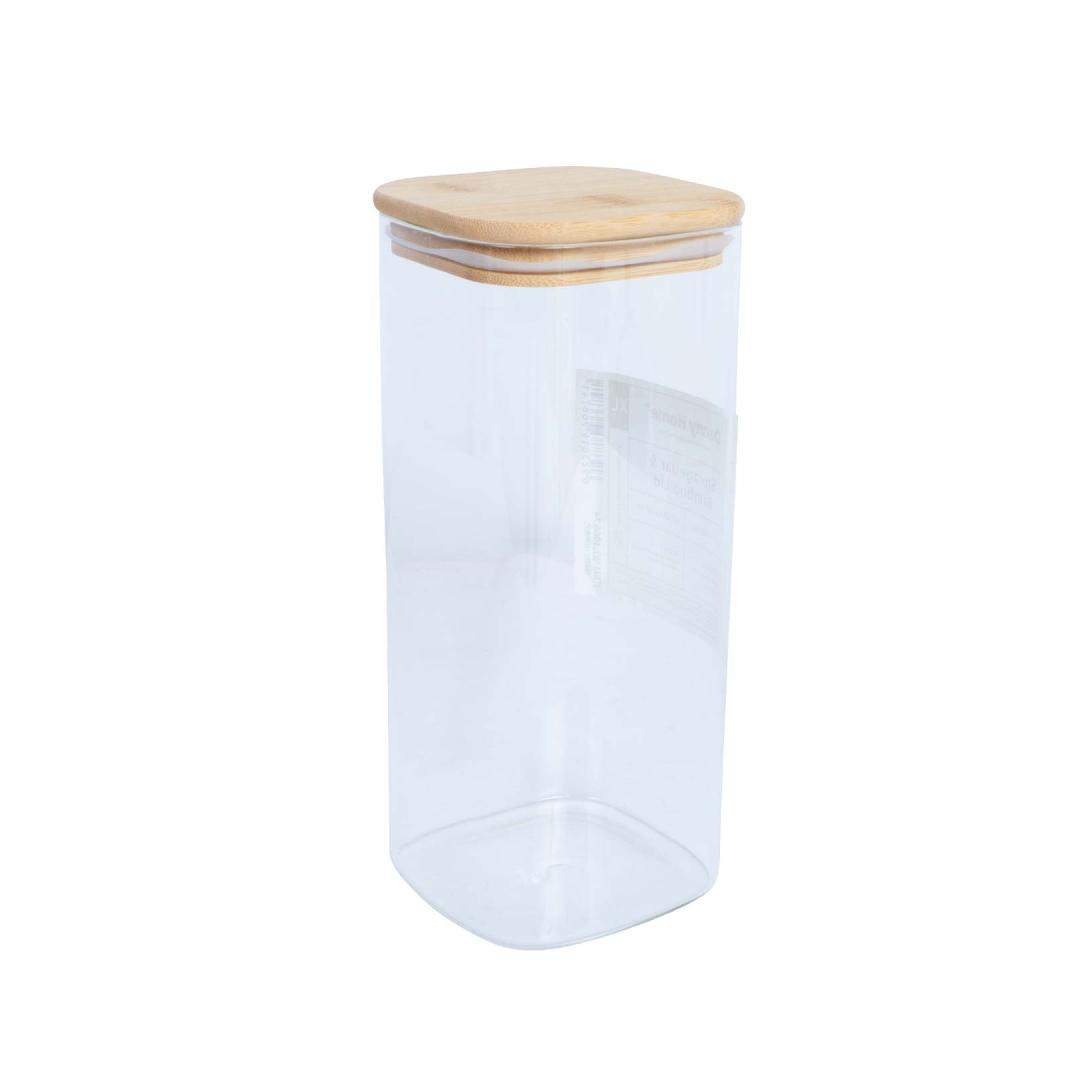 Purk JAR 10x10xH23cm 1900ml bambusest kaanega, klaas