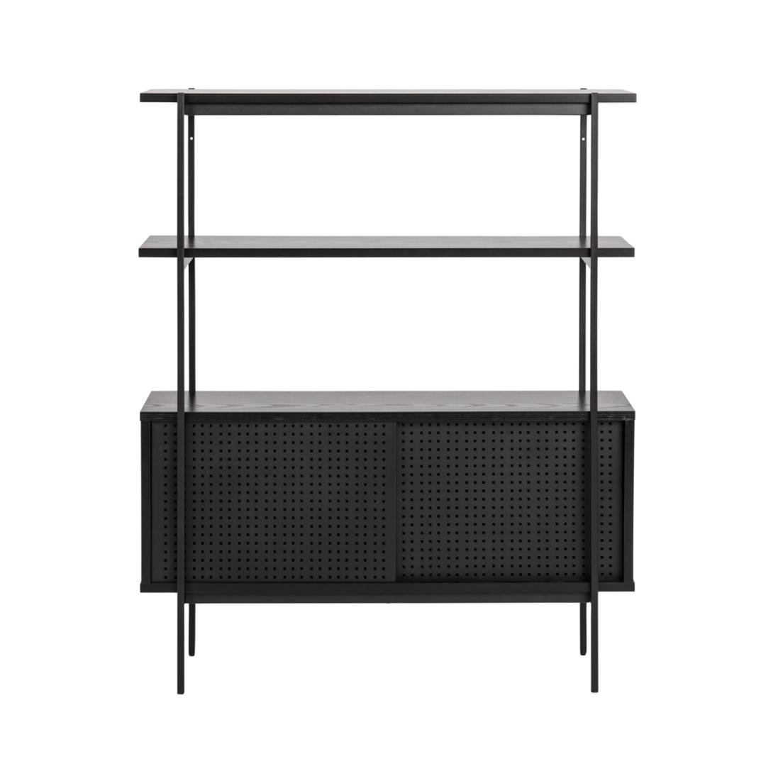 Riiul ANGUS 94x27xH114cm, must, riiulid: must saare melamiin, raam/kapi liuguks: metall