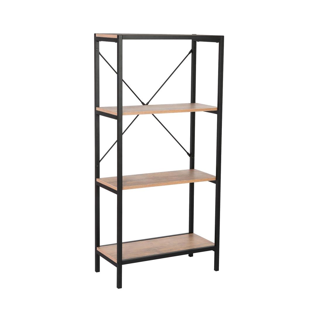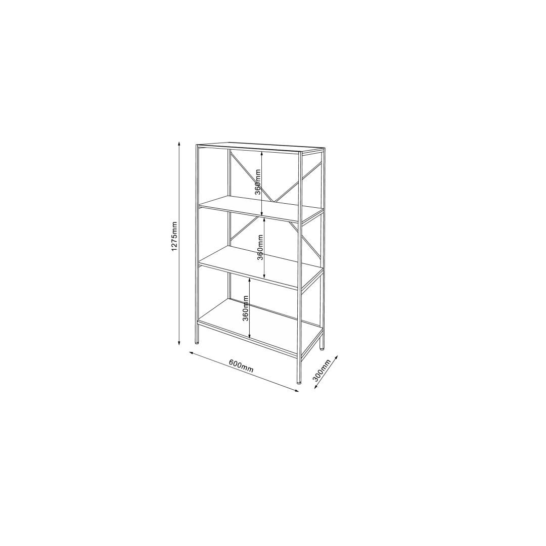Riiul LAVINA 60x30xH127,5cm, saar/must. Riiuli raam on valmistatud metallist ja viimistletud musta pulbervärviga. Riiulid on valmistatud saaredekooriga melamiinplaadist.
