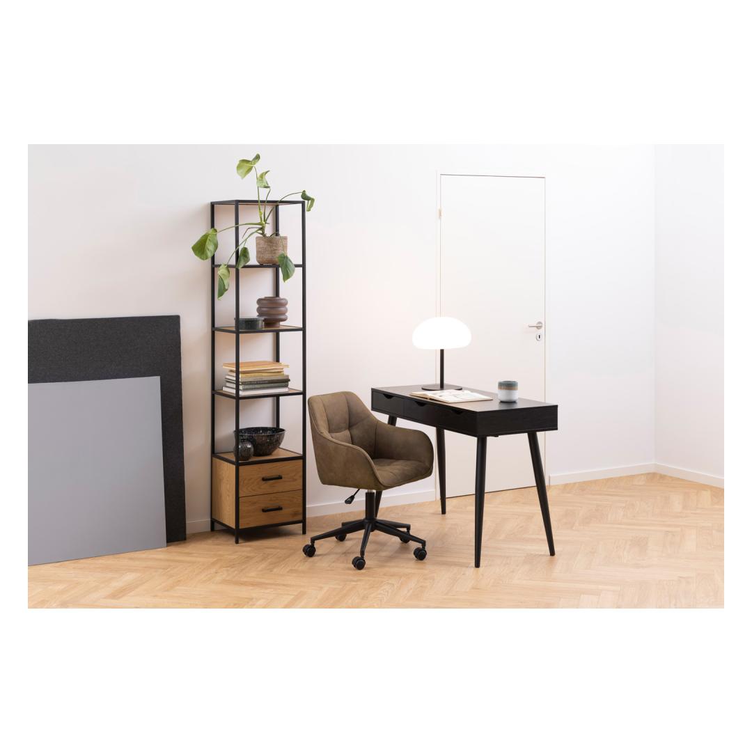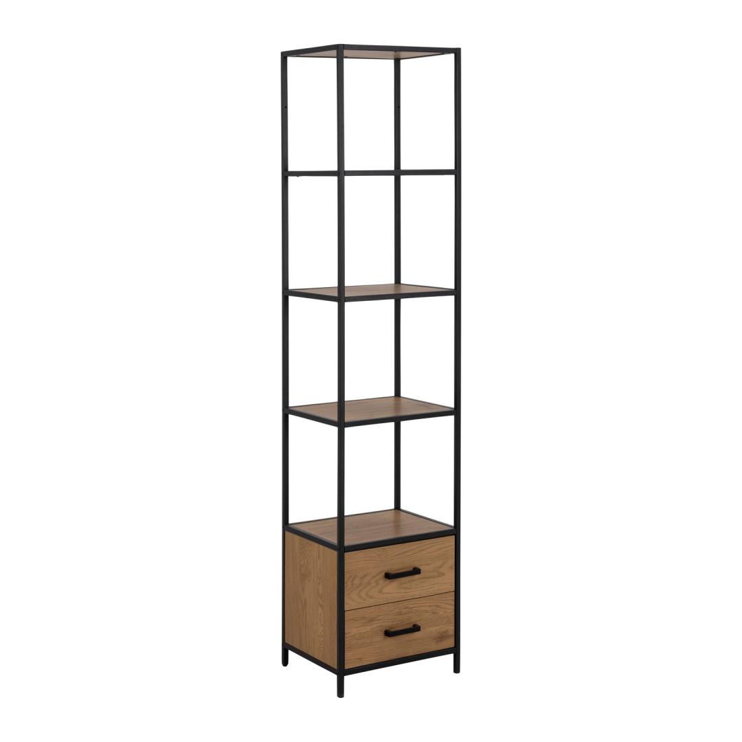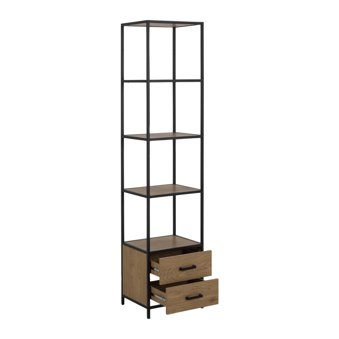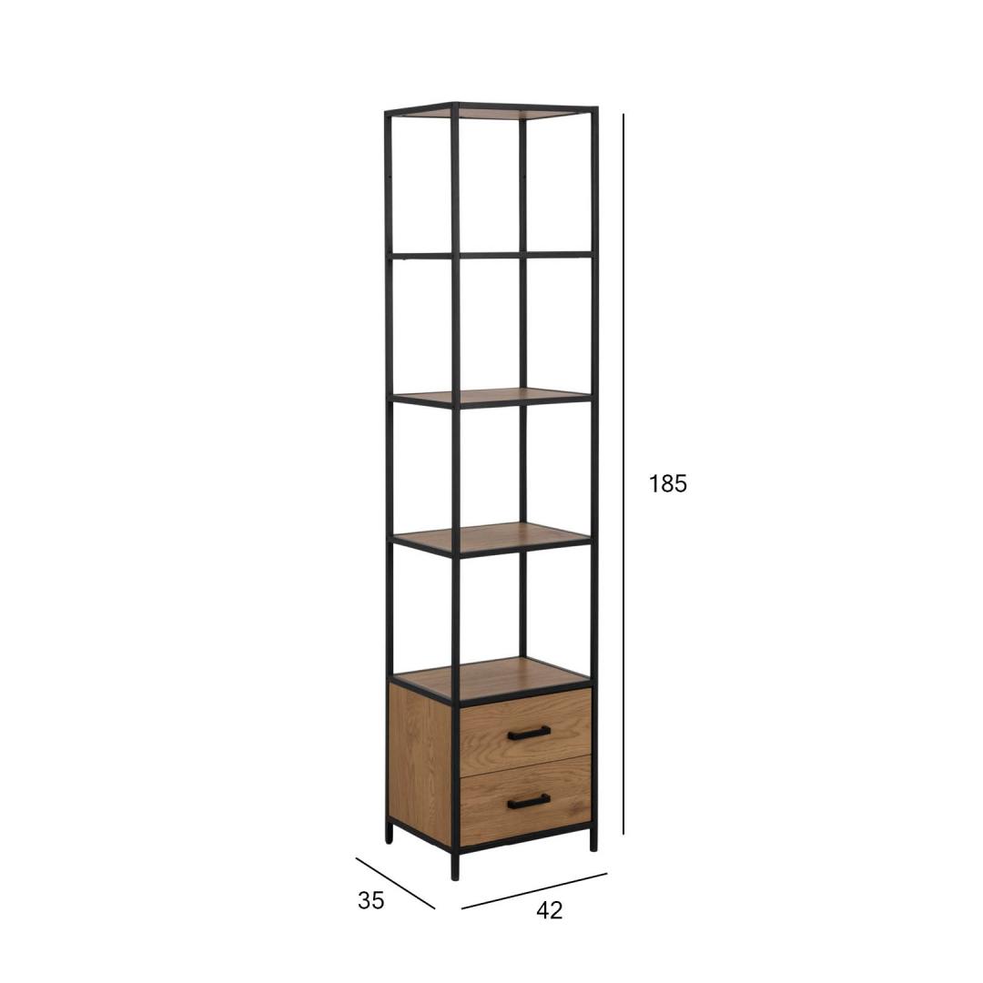 Kaasaegne tööstuslikus stiilis raamaturiiul. 2 sahtlit ja 3 riiulit. Must pulbervärvitud metallraam kontrasti loomiseks. Metsiku tamme välimus loob sooja ja hubase atmosfääri. Lihtne hooldada. Kaasaegne tööstuslikus stiilis raamaturiiul. 2 sahtlit ja 3 riiulit. Must pulbervärvitud metallraam kontrasti loomiseks. Metsiku tamme välimus loob sooja ja hubase atmosfääri. Lihtne hooldada.