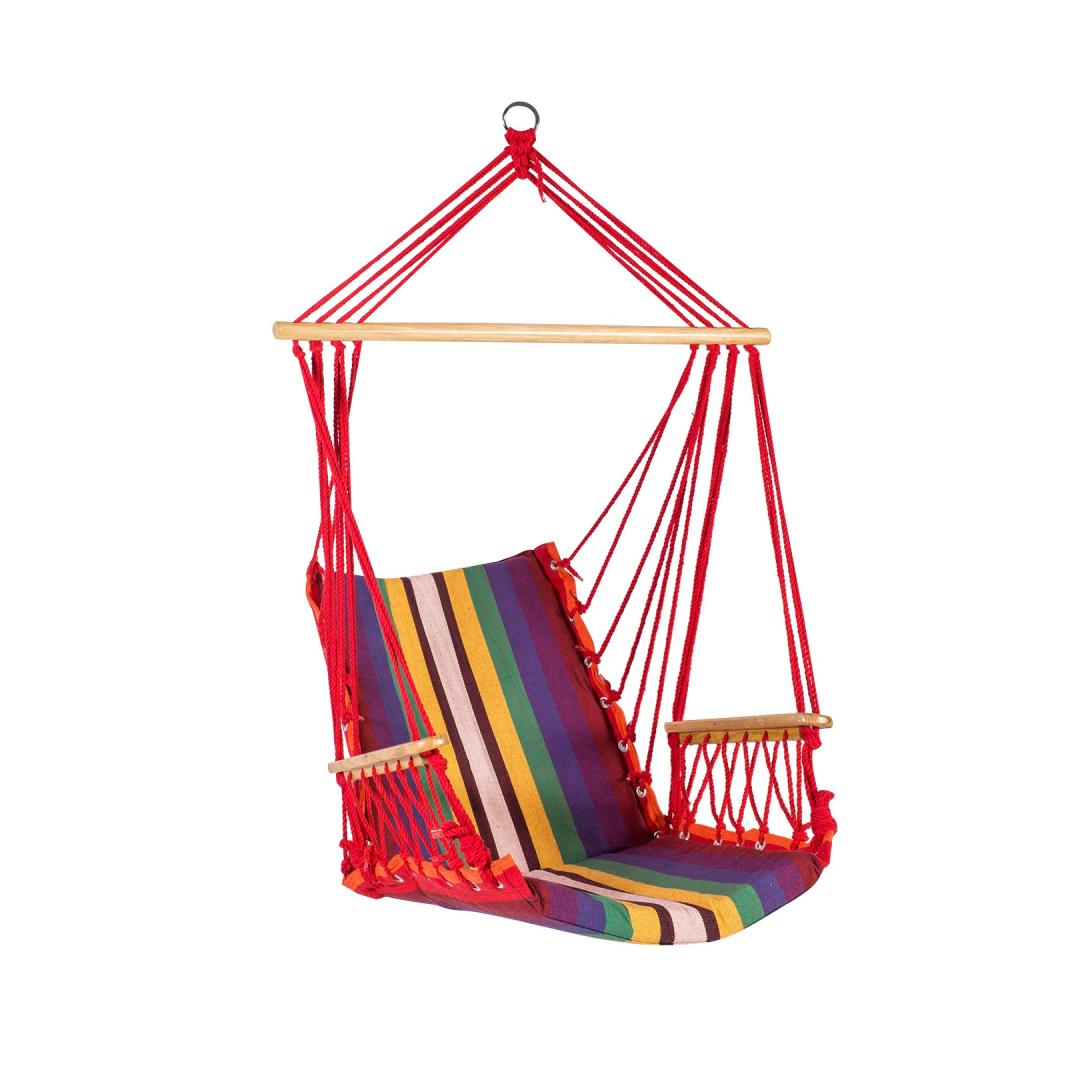Ripptool HIP, punasetriibuline. Ripptooli iste on valmistatud puuvillasest kangast. Istme ja seljatoe sees on 4cm poroloonist polsterdus. Istme laius on 48cm, sügavus 45cm, seljatoe kõrgus on 55cm. Puidust käetoe pikkus on 39cm, ülemise puidust pulga pikkus on 80cm. Maksimaalne kandevõime 120kg. Ripptooli võib riputada tugeva puuoksa või tala külge. Samuti on võimalik kiige üles riputamiseks kasutada kandejalga. HOOLDUS: toote eluea pikendamiseks kaitske seda ilmastikuolude eest. Ärge jätke kiike pikemaks ajaks päikese või vihma kätte. Kanga ja nööride vastupidavus väheneb UV-kiirguse ja liigniiskuse mõjul ning värvid tuhmuvad. Võimalusel korjake ripptool peale kasutamist kokku ja hoiustage kuivas, hea ventilatsiooniga ruumis. Enne hoiule panekut laske kiigel täielikult ära kuivada. Ripptooli võib pesta käsitsi kuni 40-kraadises vees. Kasutage ainult leebeid, mitte pleegitava toimega pesuvahendeid.