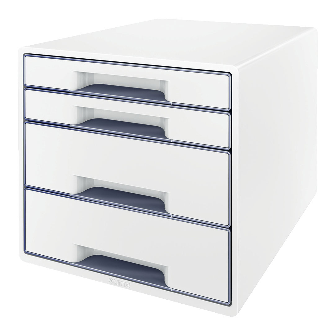 Sahtliboks 287x270x363mm 4-sahtliga Leitz WOW Desk Cube, läikiv, valge-hall.