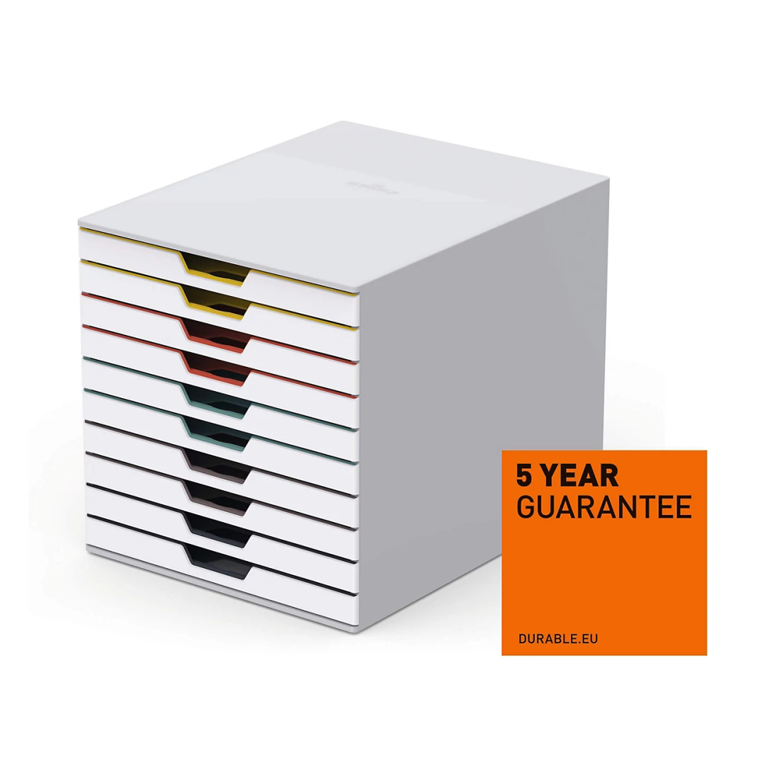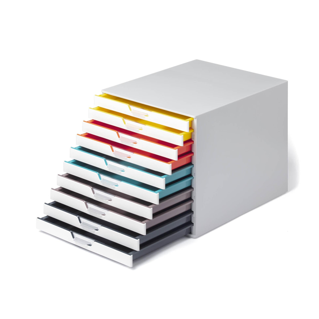 Sahtliboks kümnes erinevas värvitoonis sahtlitega: Hea organiseerimisel ja orientatsioonil.