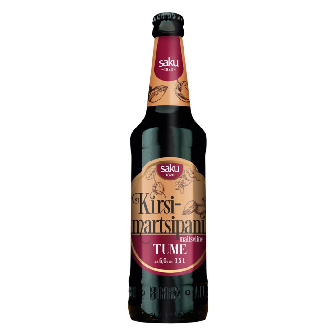 SAKU õlu Kirsi-martsipanimaitseline tume 6% 50cl (klaas)