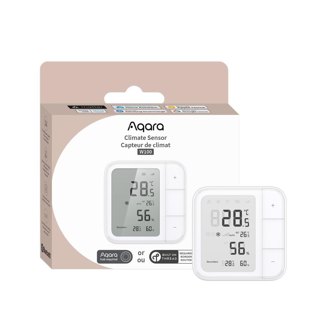 Monitor temperature & humidity in real time with the Aqara Climate Sensor W100. Dual-protocol, Matter-compatible, smart buttons & HVAC control support.