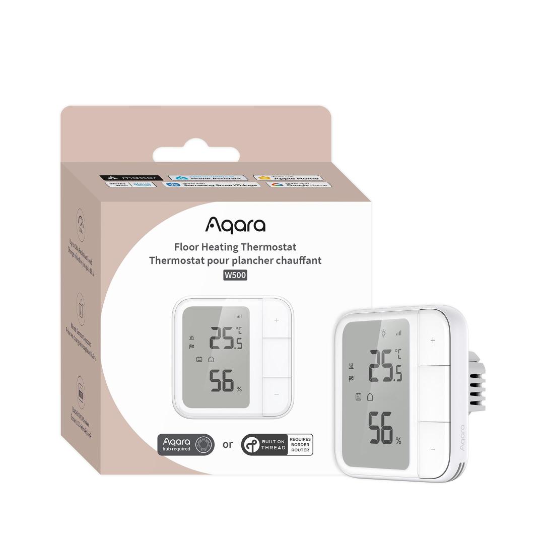 Control your underfloor heating with the Aqara Floor Heating Thermostat W500. Supports Thread, Zigbee, smart schedules, remote control, and energy-saving automations