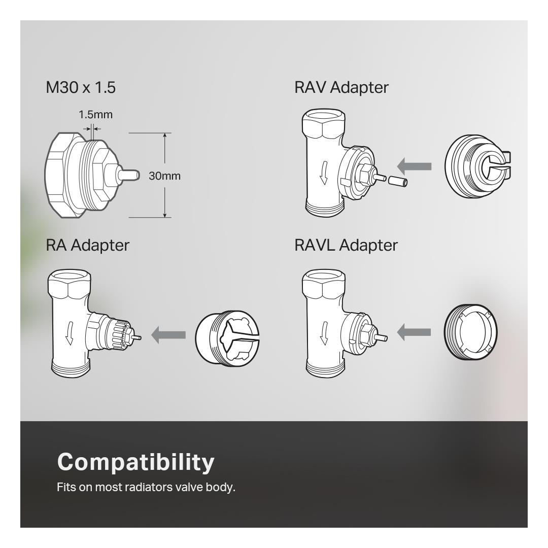 Versatile Compatibility – Fits on most radiator valve body thread (M30x1.5) and the three adapters(RA, RAV & RAVL) included allow more compatibility.