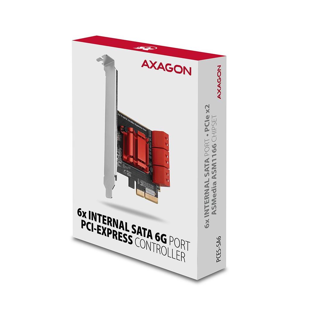 The AXAGON PCES-SA6 PCI-Express controller extends your desktop PC with six high-speed SATA III ports with a transmission rate up to 6Gb/s.