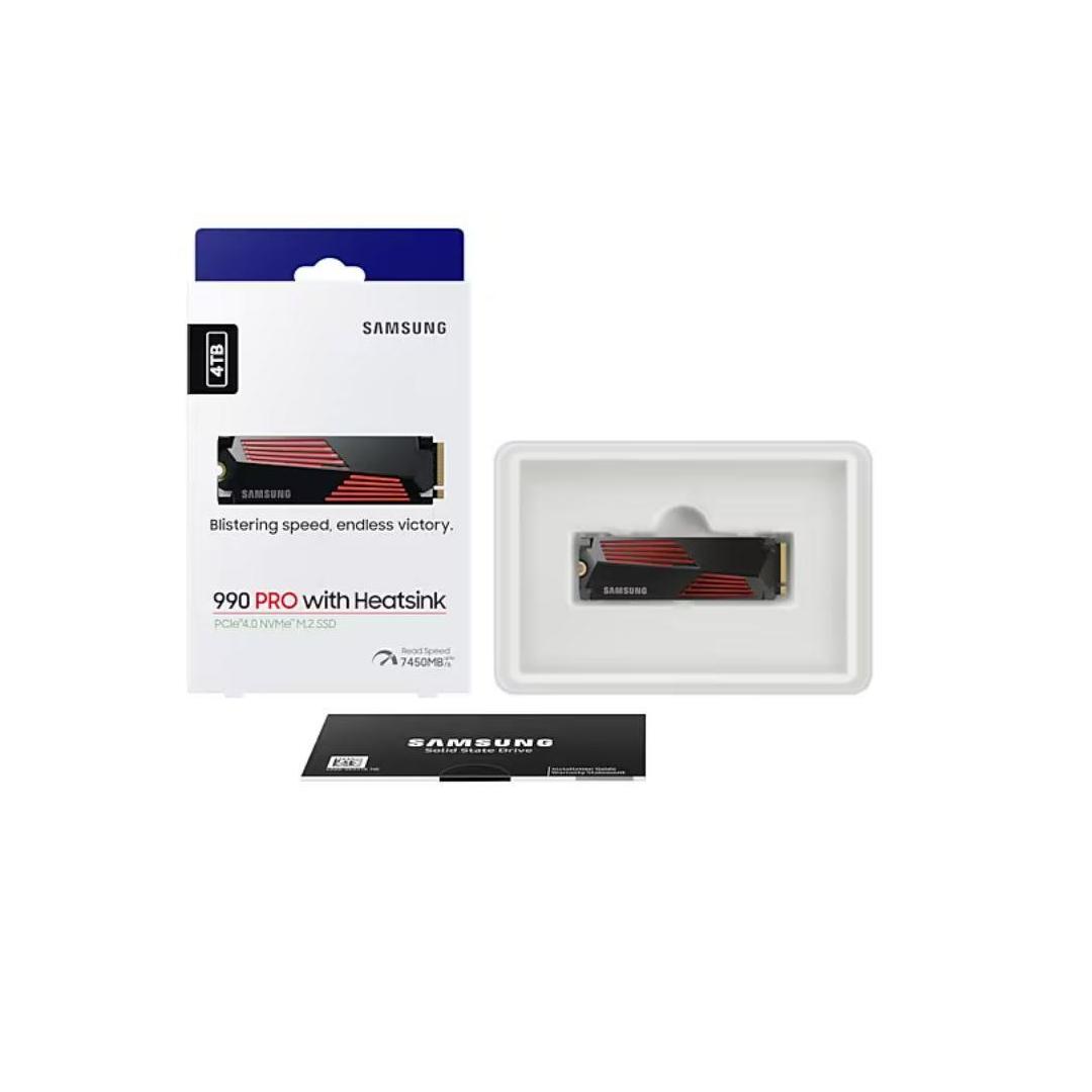 SSD series 990 PRO with Heatsink|4TB|Form Factor M.2|PCIe Gen4|NVMe|Technology TLC|Write speed 6900 MBytes/sec|Read speed 7450 MBytes/sec|Drive thickness 2.3mm|TBW 1200 TB|MTBF 1500000 hours