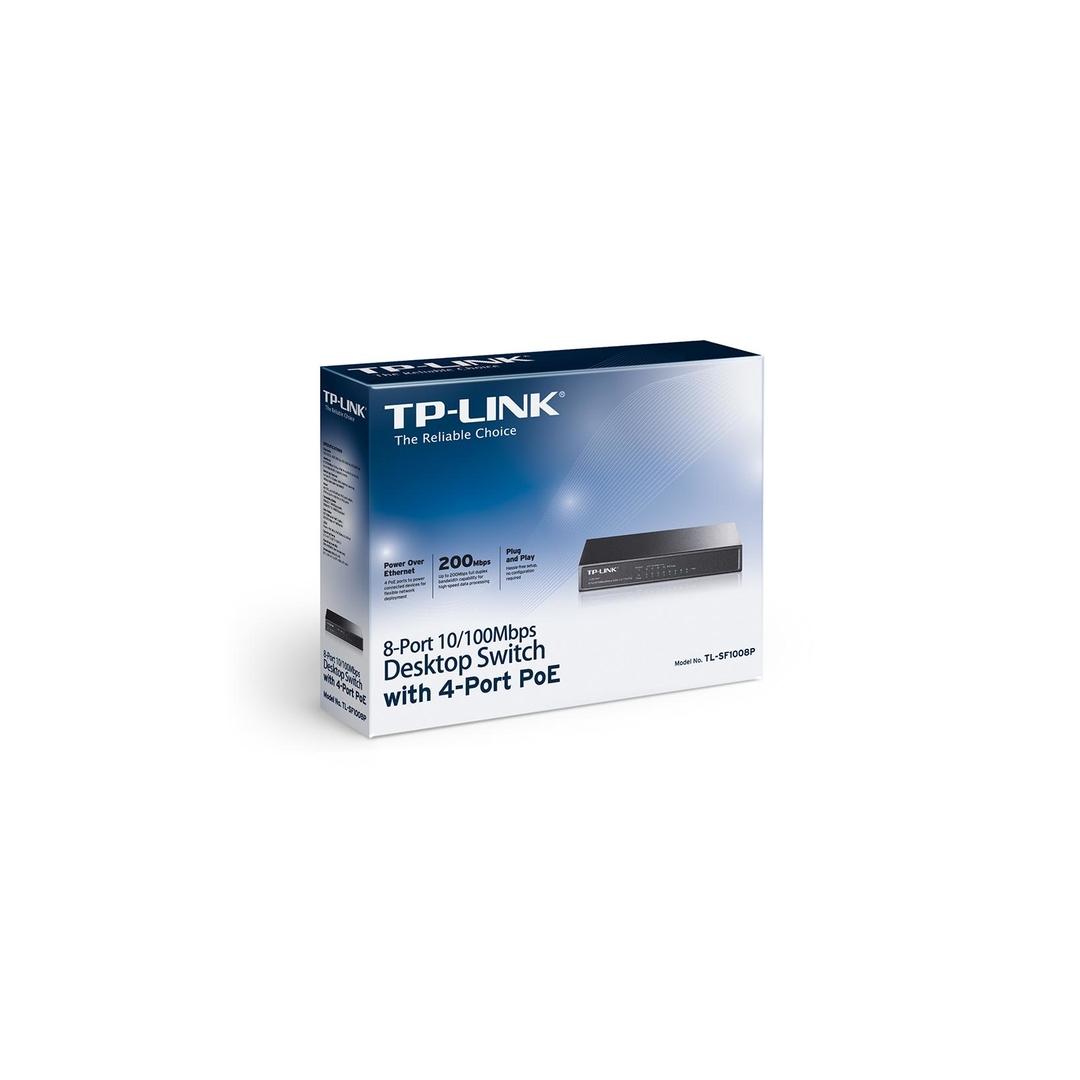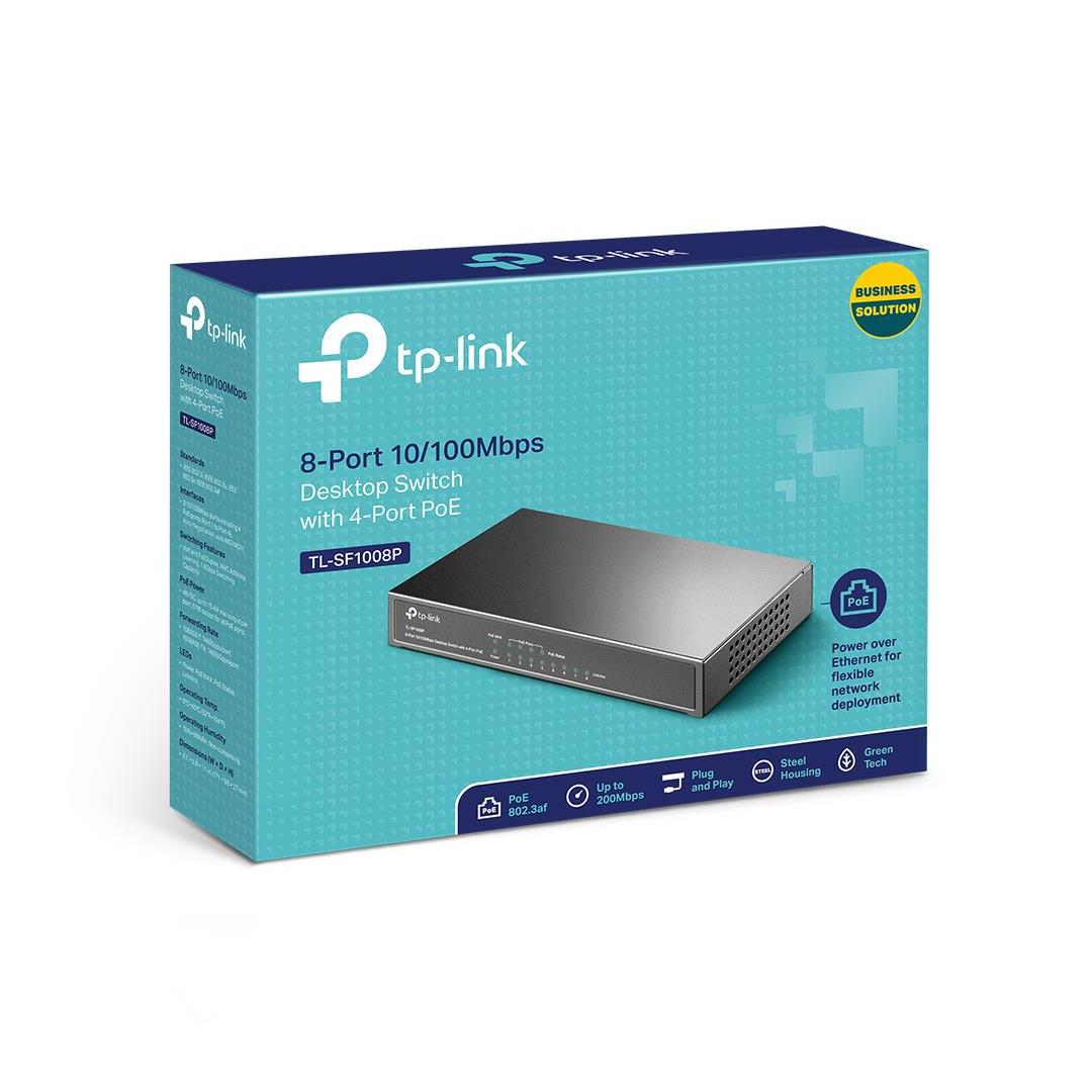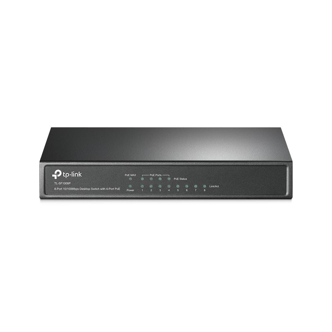 The TL-SF1008P 8-port 10/100M Desktop PoE Switch provides the seamless network connection. It integrates 100Mbps Fast Ethernet and 10Mbps Ethernet network capabilities.