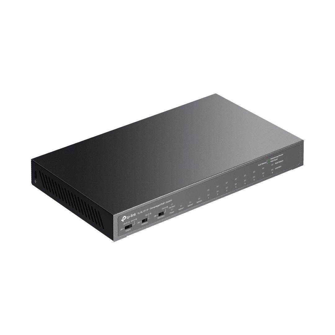 Desktop/pedestal|8x10Base-T / 100Base-TX|1xSFP|2xRJ45|PoE+ ports 8|PoE power budget 65 Watts|Switching capacity 7.6 Gbps|Forwarding rate 5.6544 Mpps|Included Accessories TL-SL1311P, User Manual, Power Supply, Cord, Rubber feet|Dimensions 209 × 126 × 26 mm|Unit Net Weight 1.1 kg