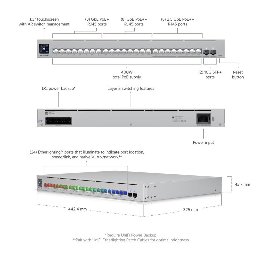 Switch UBIQUITI Pro Max 24 PoE Type L3 400 Watts USW-PRO-MAX-24-POE