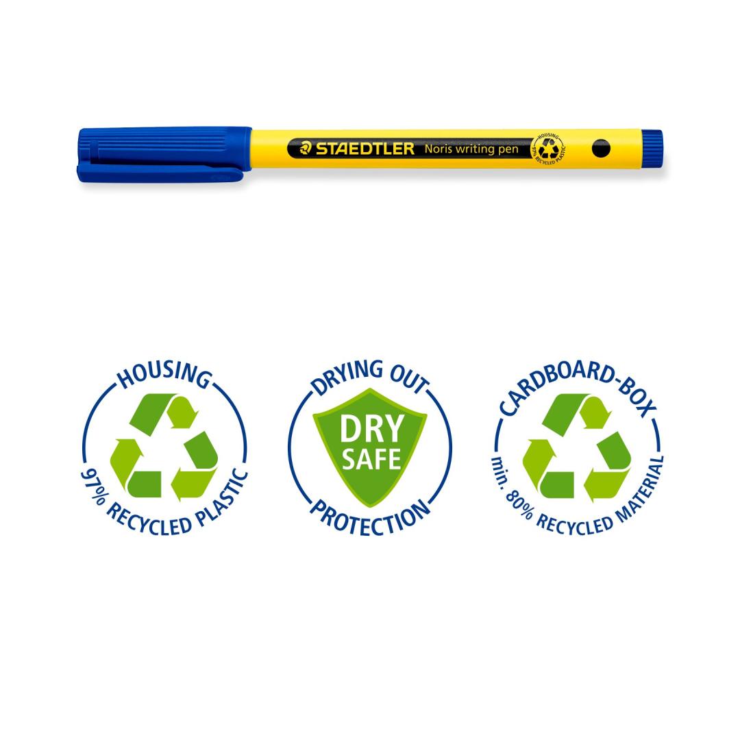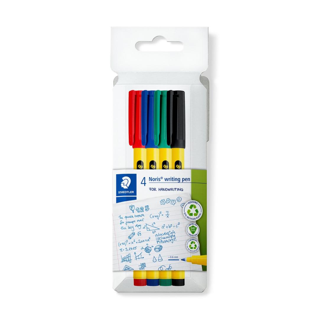 Pappkarp, mis sisaldab 4 erinevat värvi Noris peene otsaga pastakat.