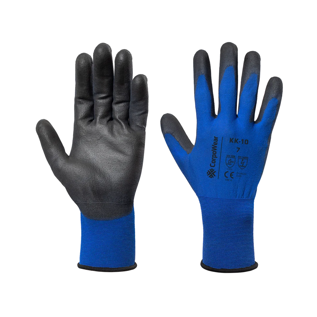 Üliõhukesed ja õhku läbilaskvad nailonist kattega töökindad KK10. Puutetundlikud., sobivad kasutamiseks touch screen ekraanidega. Õhukesed, käed mugavad ja tagavad äärmiselt hea sõrmeotste tundlikkuse. Peopesad on kaetud PU-ga. Sobivad täppistöödeks. Saadaval suurused 6-11. Pakis 12 paari, kastis 240 paari.