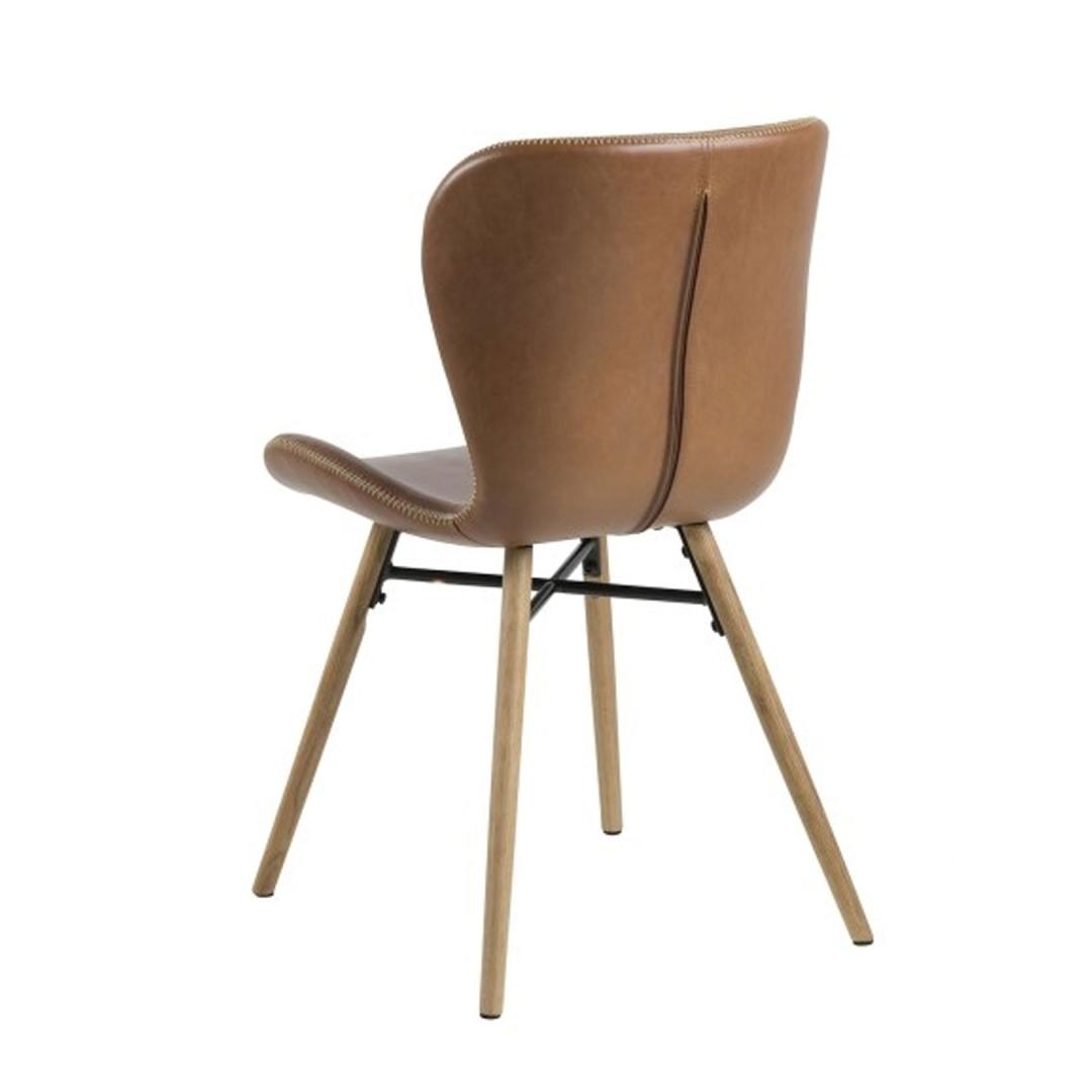 Tool BATILDA 47x56xH82,5cm. Mitmekülgne tool täiustab iga söögituba kaasaegse välimusega. Orgaanilise kujuga tool on kaetud pruuni kunstnahaga. Kumer seljatugi toetab ja lisab mugavust. Õlitatud tugevate tammejalgadega tool on stabiilne ja samal ajal stiilne. Iste/seljatugi: kunstnahk, värvus: brändi, kreemikad õmblused. Jalad: tamm, metall. Istumiskõrgus: 46,5cm. Kaalupiirang: 110kg. HOOLDUS: Puhastage seebiveest või PU (polüuretaan) pindade puhastusvahenditest kuivaks väänatud lapiga ja pühkige pind kuivaks. Kasutage ainult PH neutraalseid (7,0) puhastusvahendeid. Ärge asetage mööblit otsese päikesevalguse kätte.