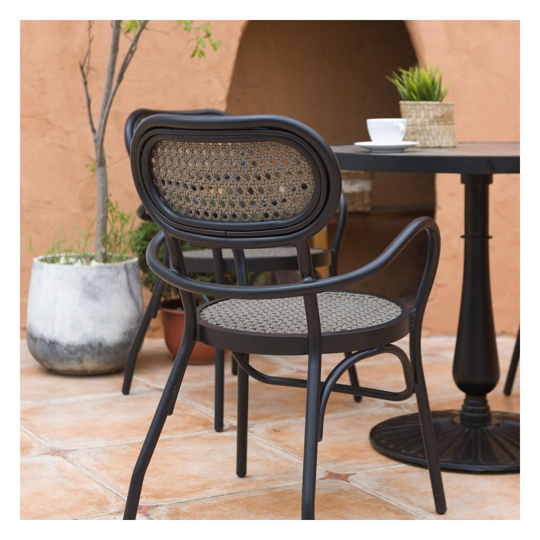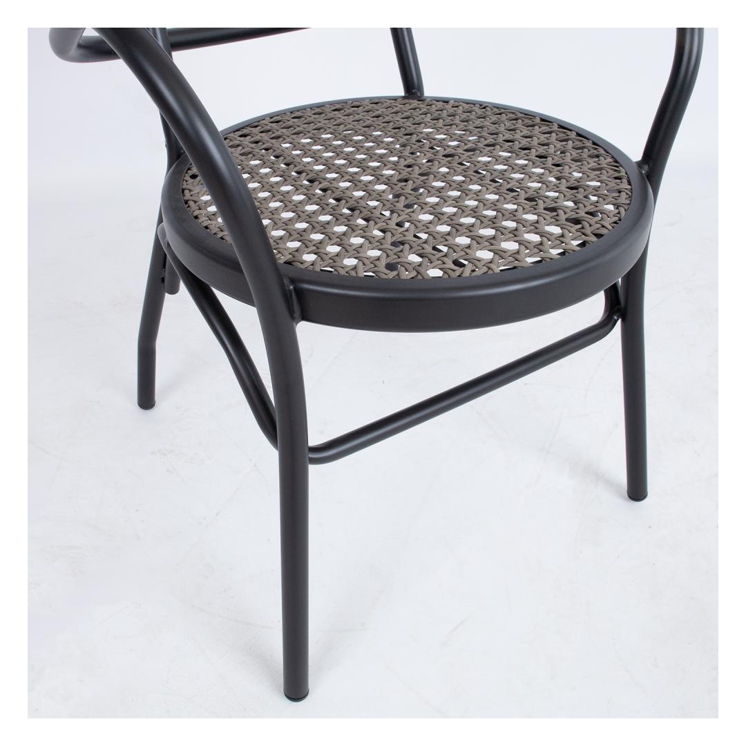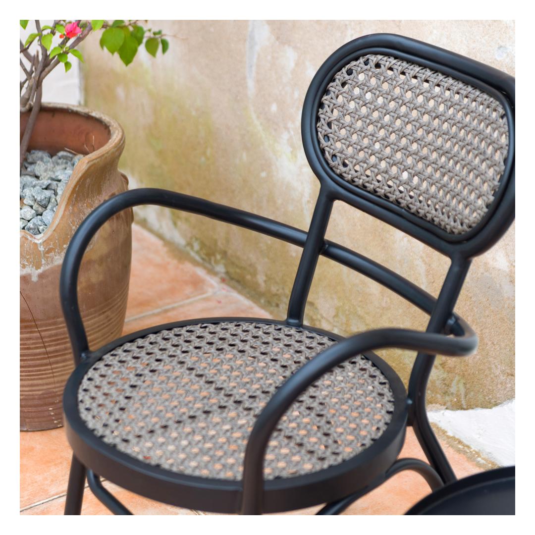 Tool BOLGHERI must. Paigutades aiatoolid rõdule, terrassile või aeda, saab kujundada hubase istumisala, kus päeval kaunist ilma nautida või õdusaid õhtuid veeta. Valides juurde sobiva laua ja kombineerides sarnaseid tooteid, on võimalik luua endale meelepärane ja harmooniline komplekt. Tooli iste ja seljatugi on kaetud halli plastikpunutisega. Tooli raam on valmistatud mustast pulbervärvitud alumiiniumist. Metalltoru mõõdud on D25x1,8mm. Tooli mõõdud on 56x62xH83cm.