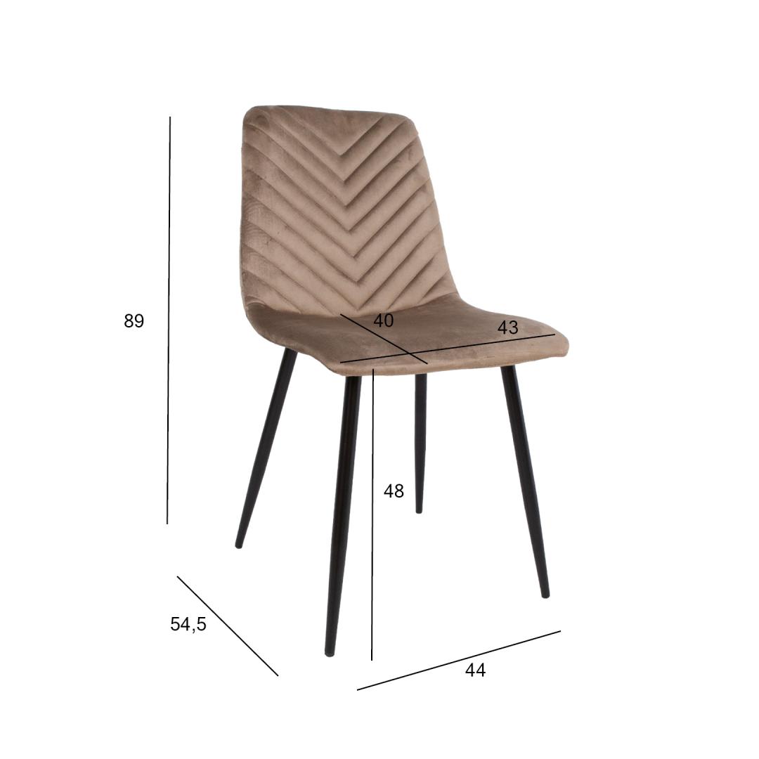 Tool BRIE beeþ. Mugava vormiga iste on kergelt polsterdatud ja kaetud beeþi sametkangaga. Kattematerjal on polüesterkangas, Martindale 25 000. Metallist jalad on kaetud musta pulbervärviga. Tooli üldmõõdud on 45x53xH89cm. Istme laius 44cm, istme sügavus 40cm, istme kõrgus 48cm, Seljatoe kõrgus 43cm. Kaalupiirang 120kg.